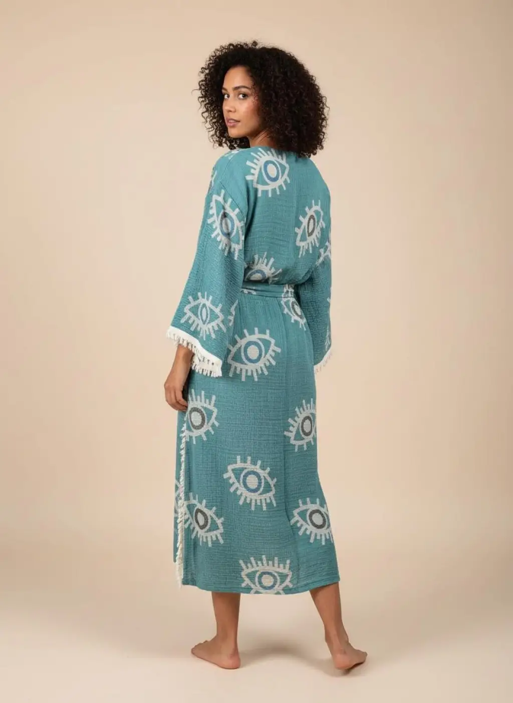 FERNS TAHTA BASKILI MÜSLİN KAFTAN