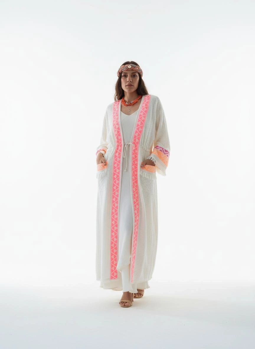 Kilim desen dokuma pamuk müslin kaftan