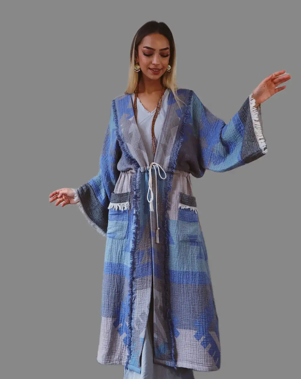 Kilim desen dokuma pamuk müslin kaftan