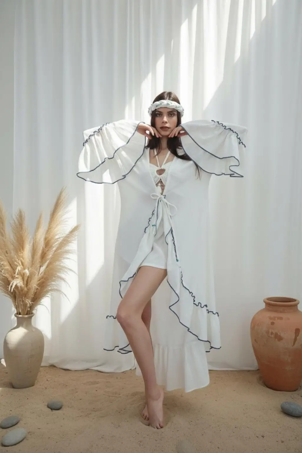 SWAN SALAŞ MÜSLİN KAFTAN / beyaz