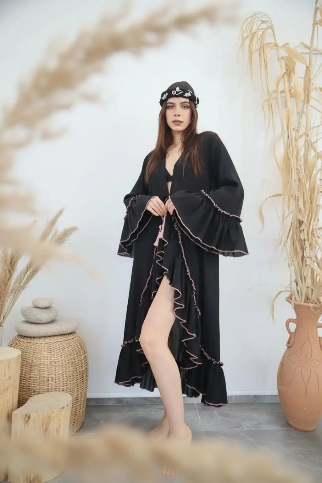 ASENA PAMUK ŞİLE BEZİ FIRFIRLI BOHO KAFTAN