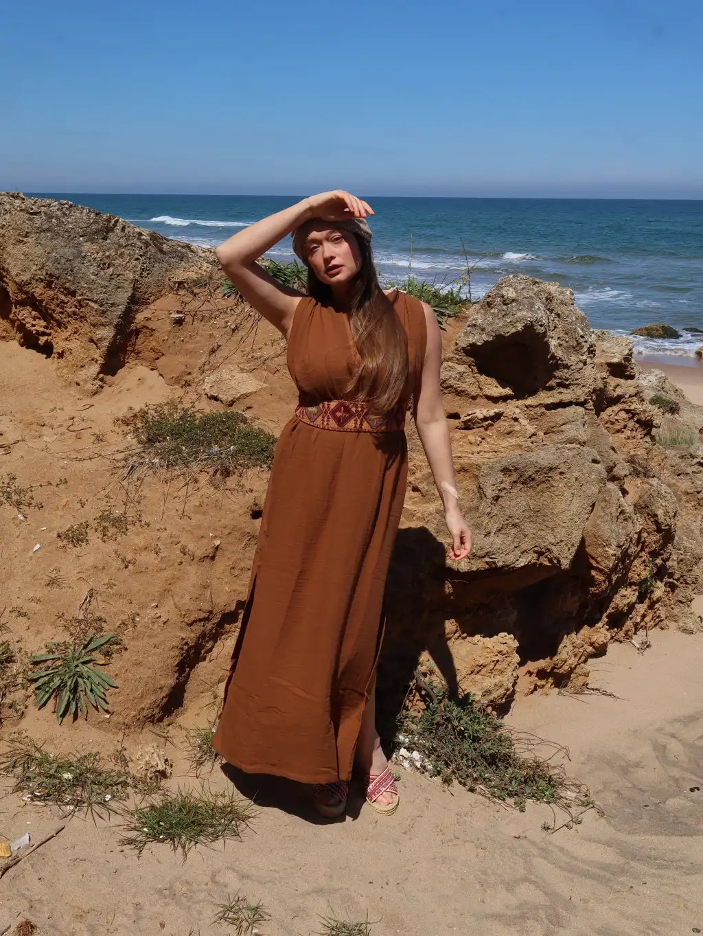 AZİZE BOHEM STİL MÜSLİN ELBİSE / Tarçın