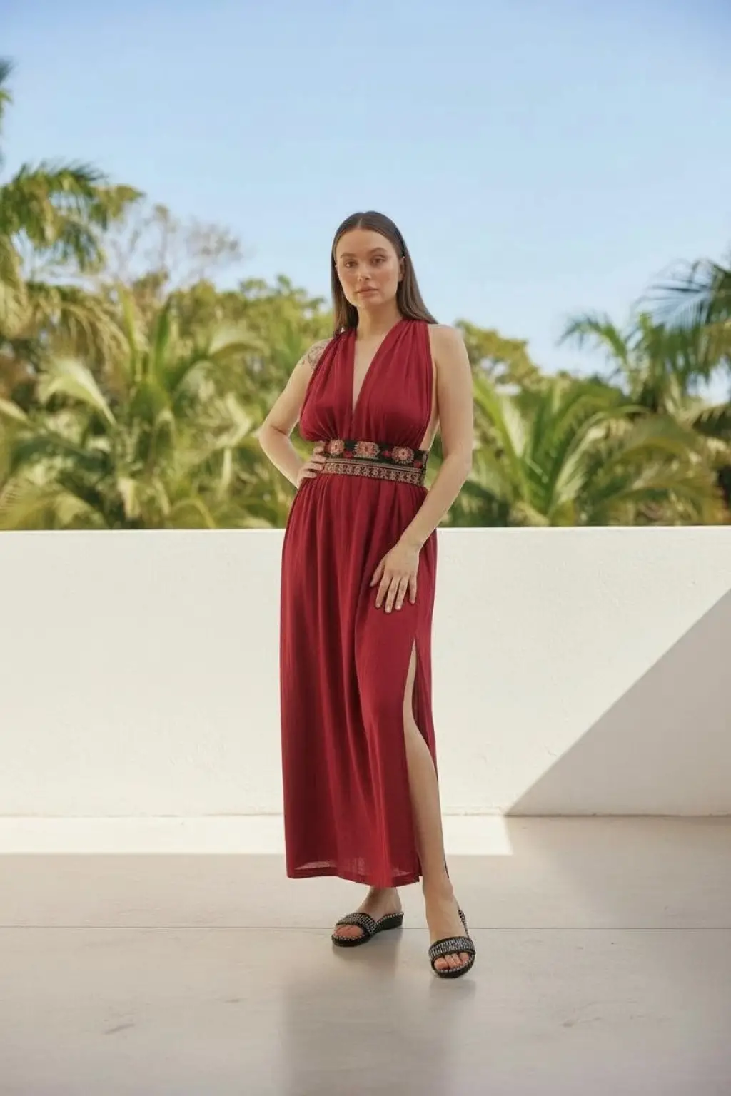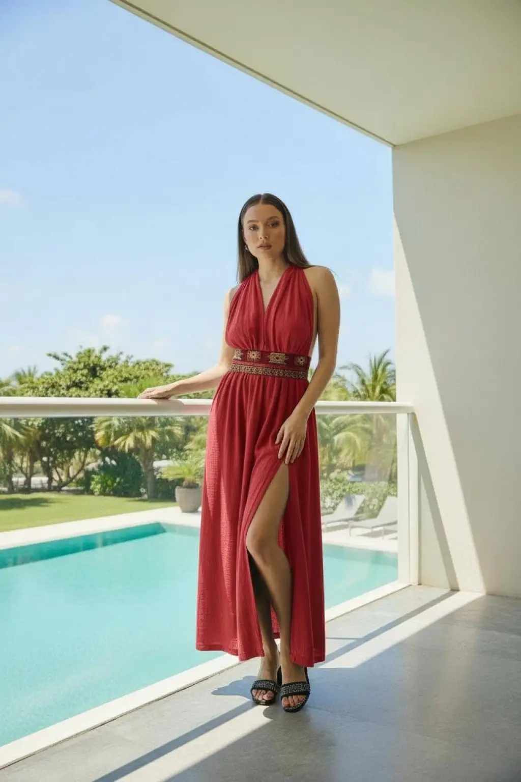 Geniş beden aralığına olan oversize kesimi ve pamuk kilim kemeri ile öne çıkan Pamuk müslin elbisemiz,