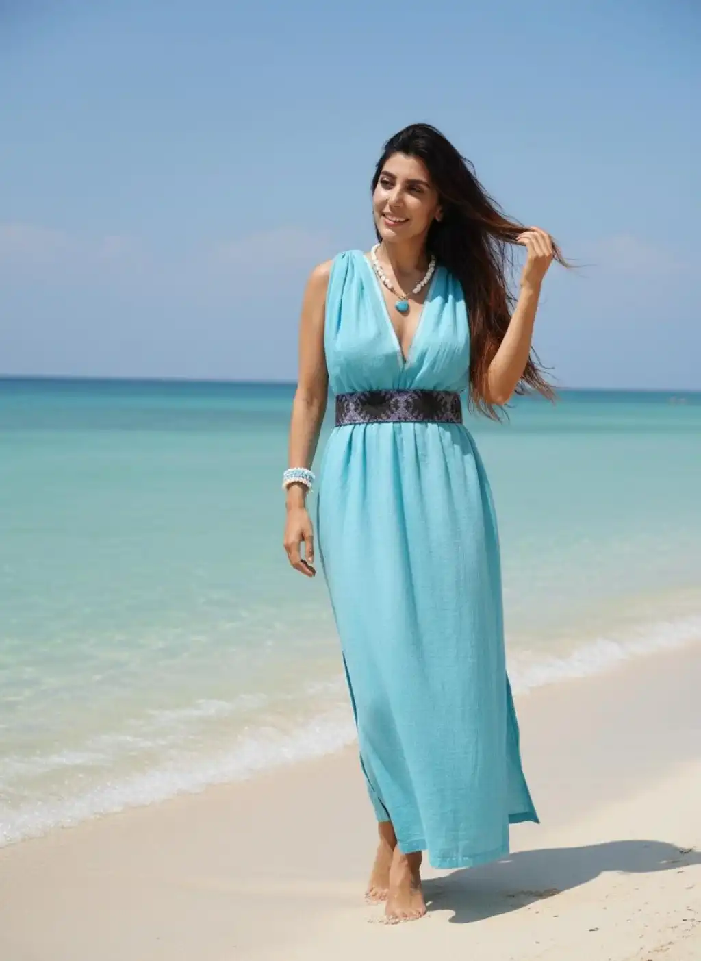 100% Pamuk müslin dokuması ve klim kemeri ile fark yaratan elbisemizi ister içine bir büstiyer giyecek günlük, ister plajda kullanabilirsiniz.