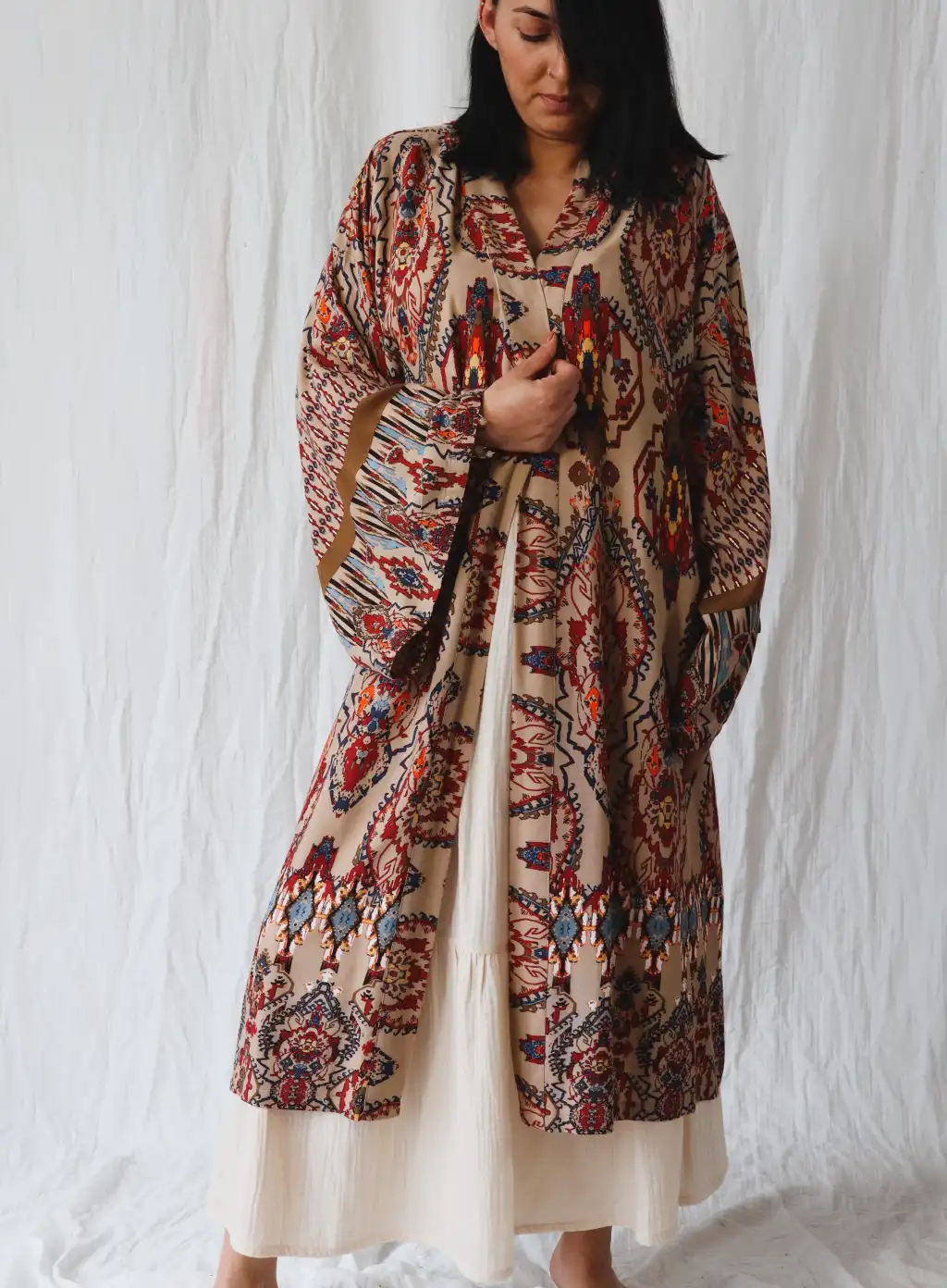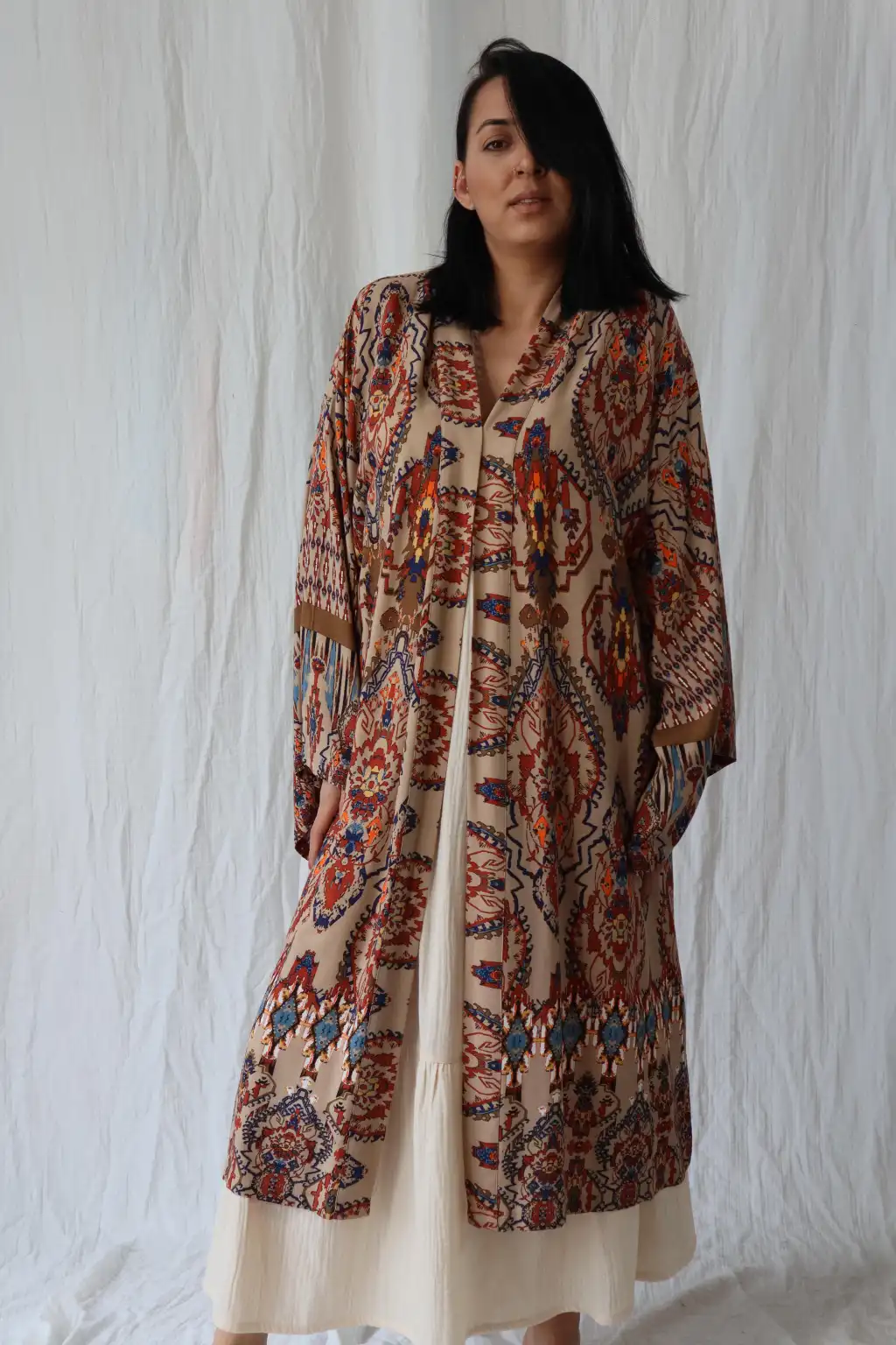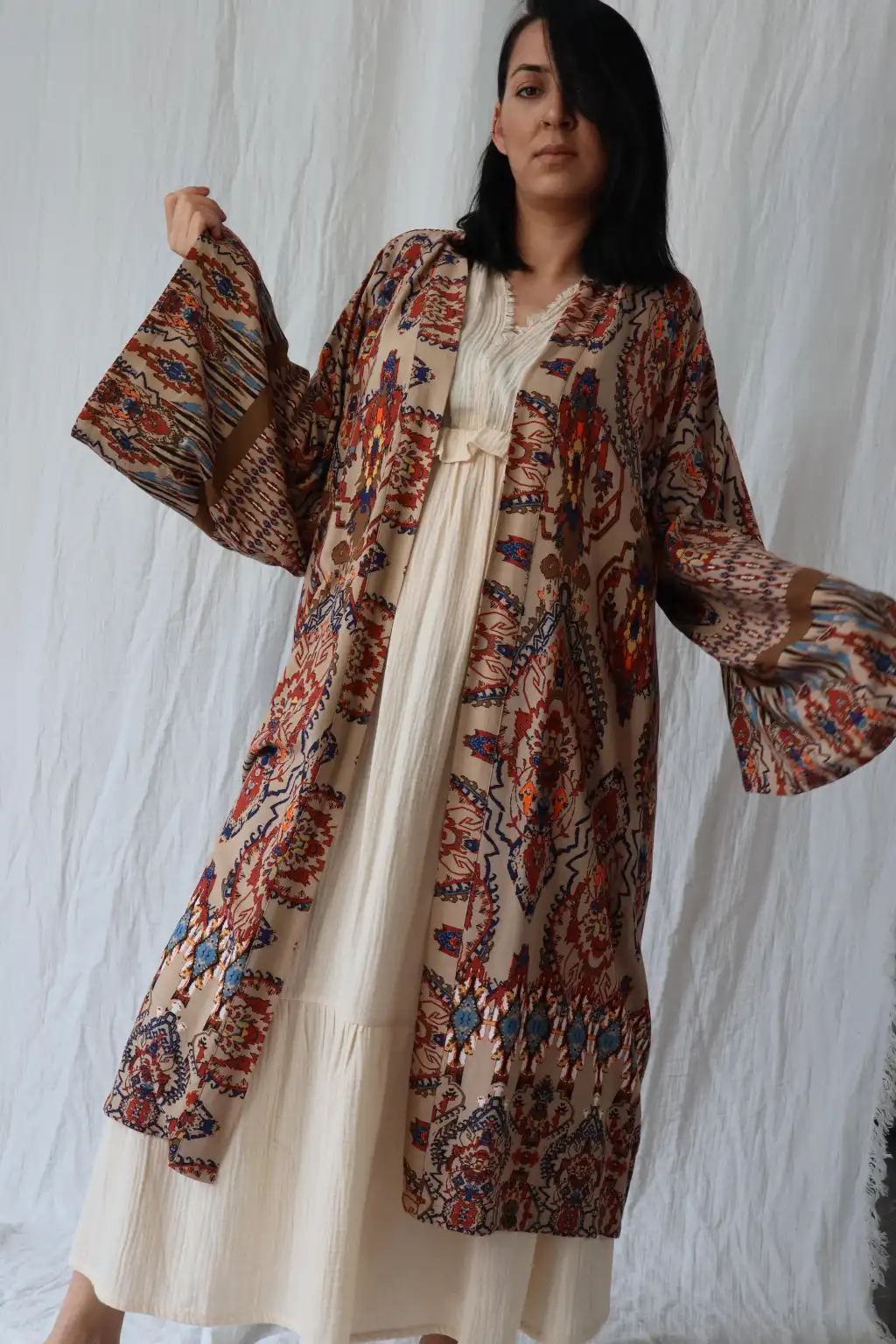 Bagdat etnik desenli doğal viskon kimono