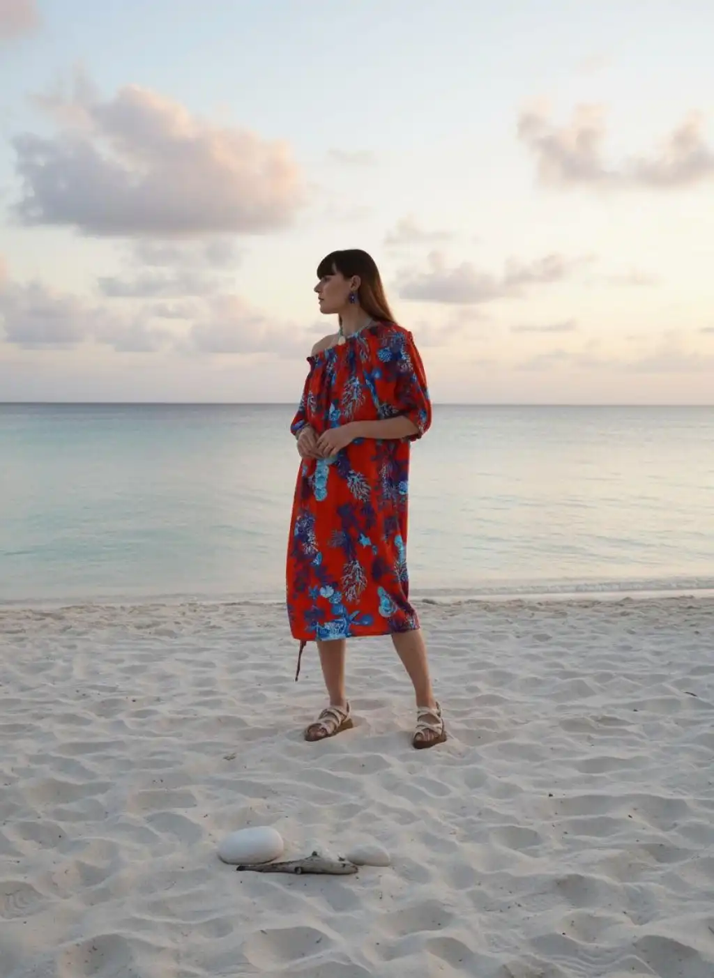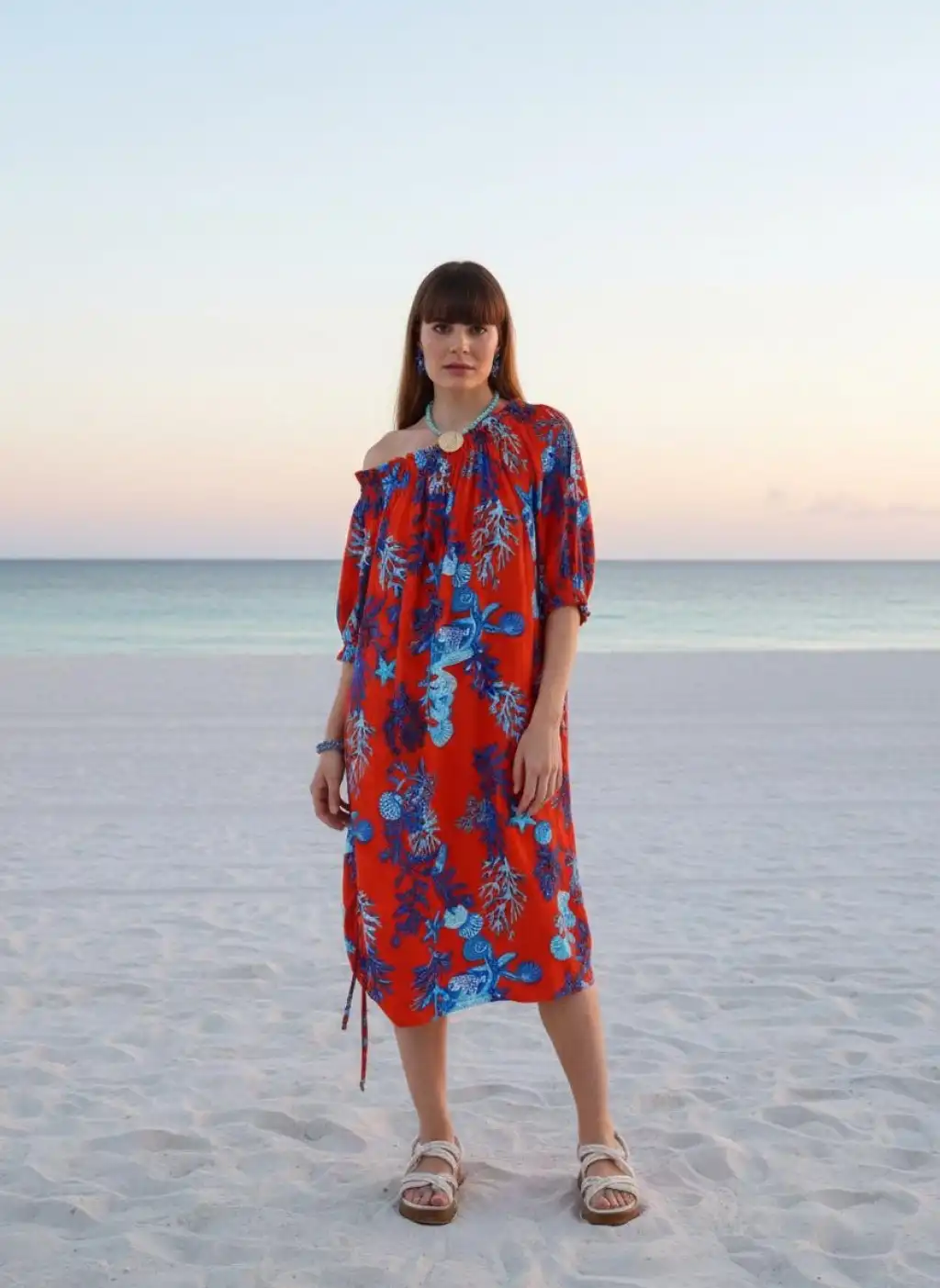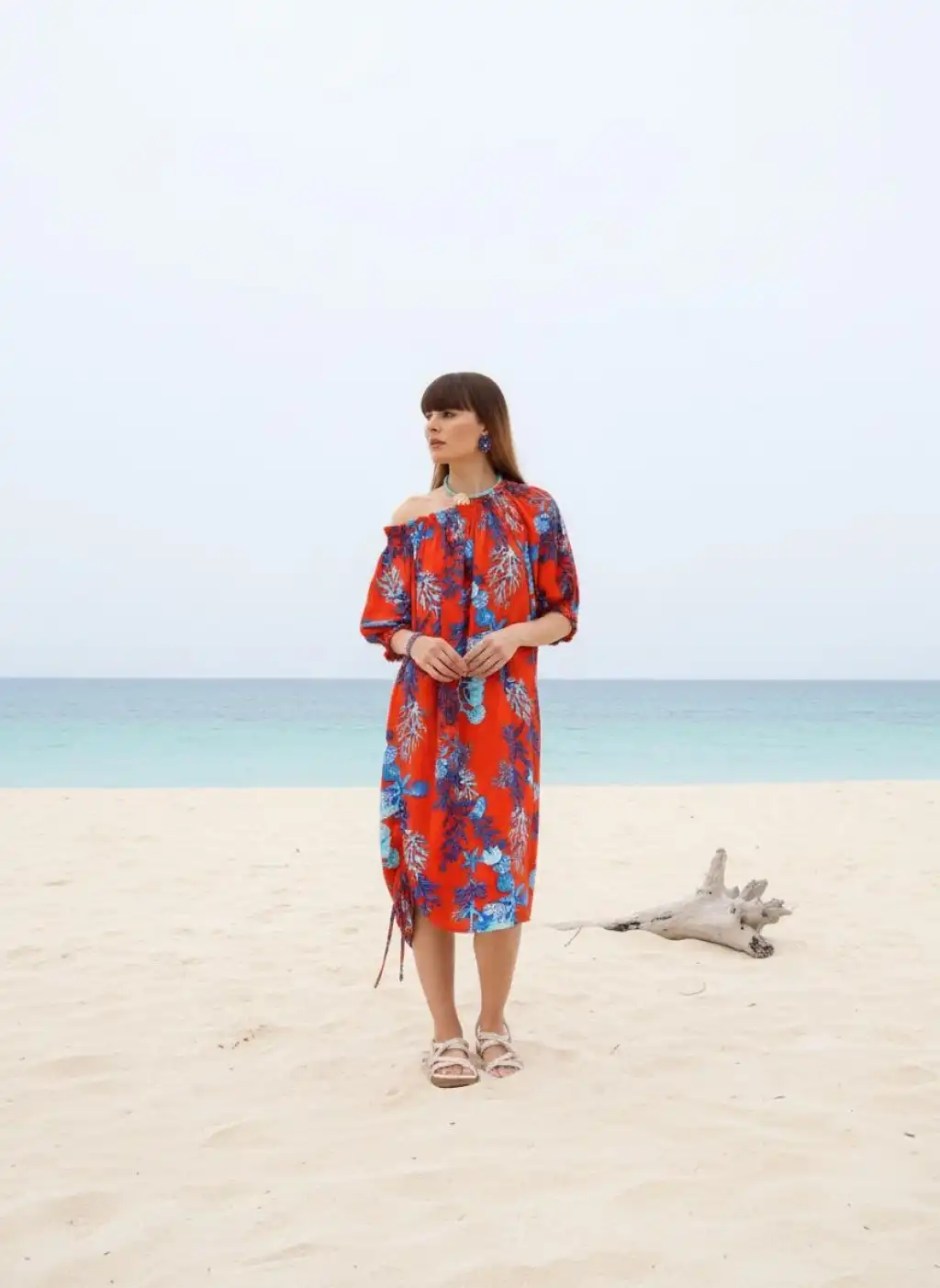 CORAL PAMUK BASKILI ELBİSE / mercan desen