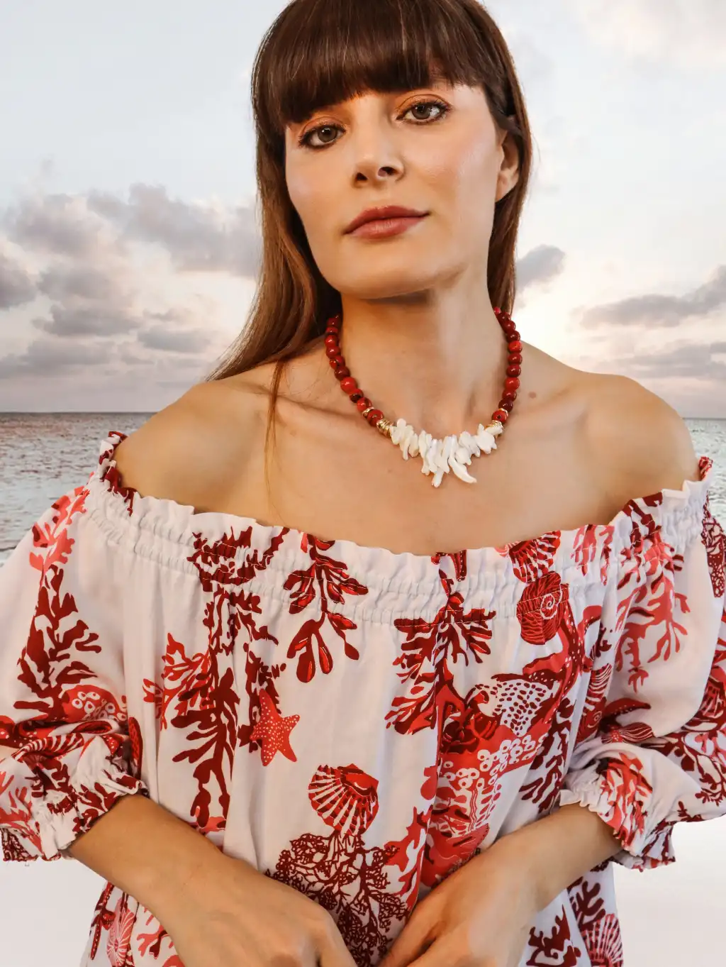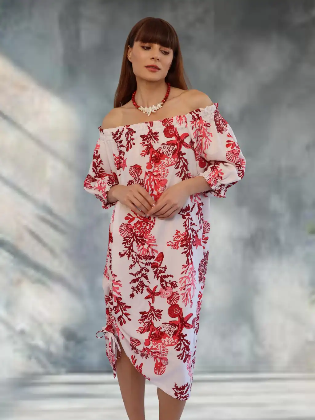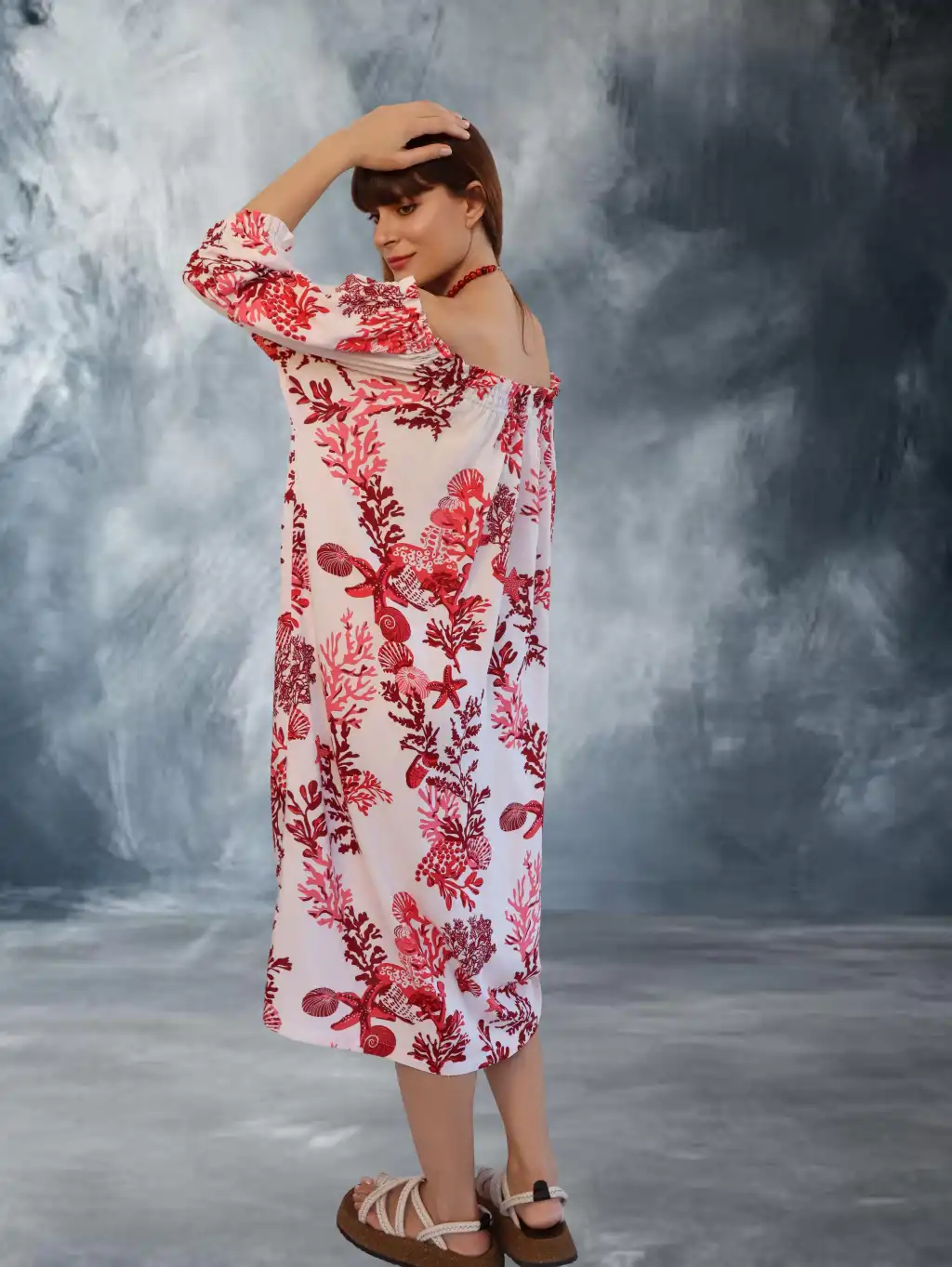 CORAL PAMUK BASKILI ELBİSE / mercan desen