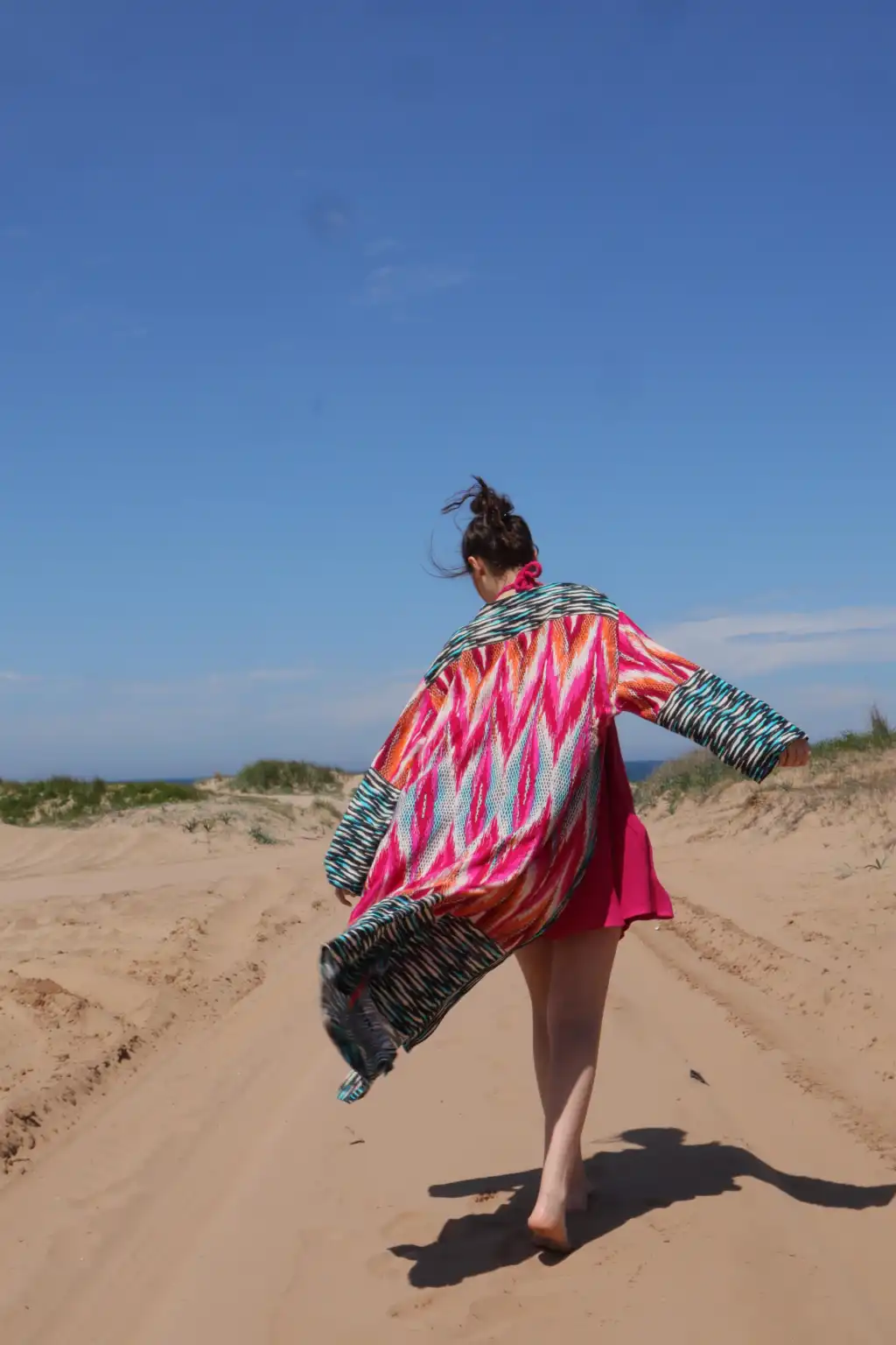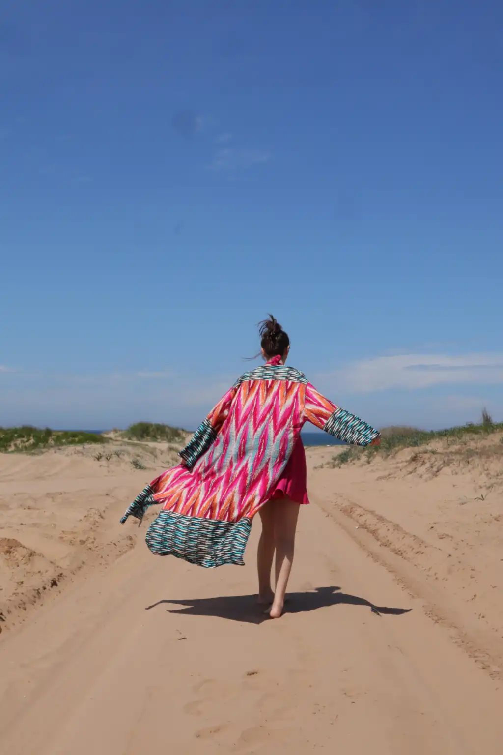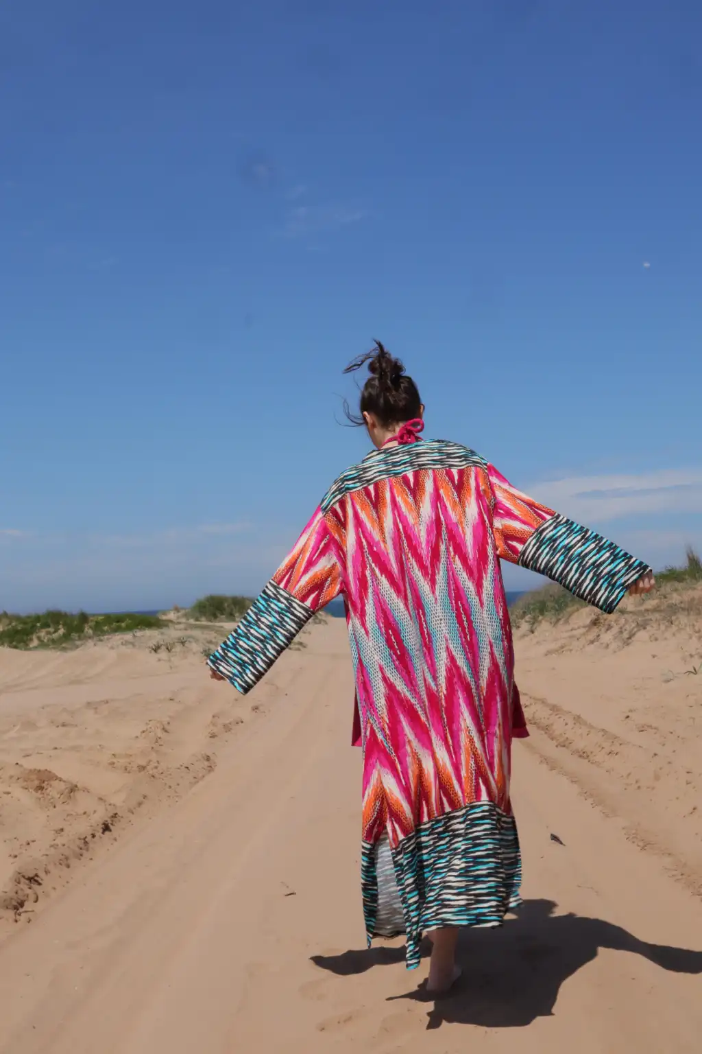Buhara Etnik Baskılı Kaftanımız, tiril tiril dökümlü kumaşı ile terletmez, efsane renkleri ve deseni ile enerjinizi yükseltir.
