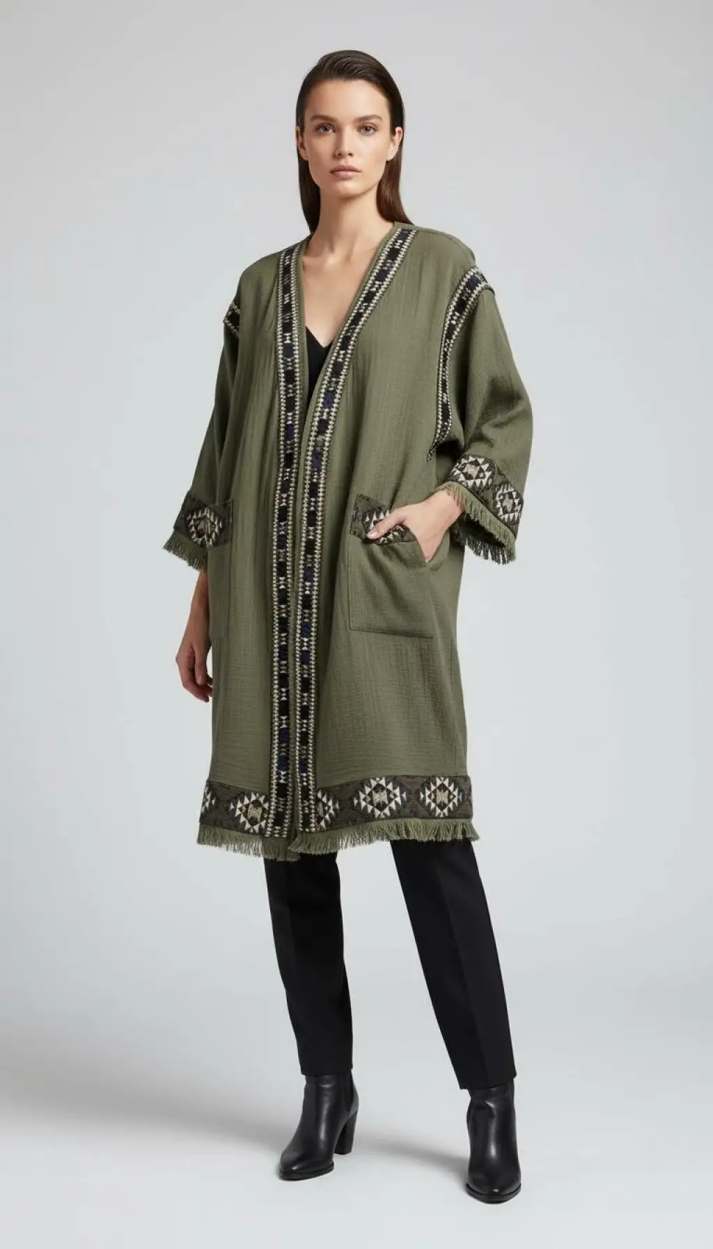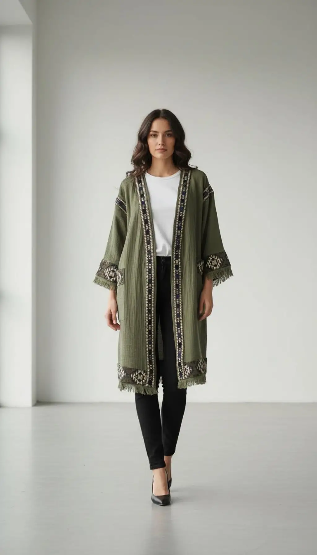 dokuma kilim detaylı müslin panço