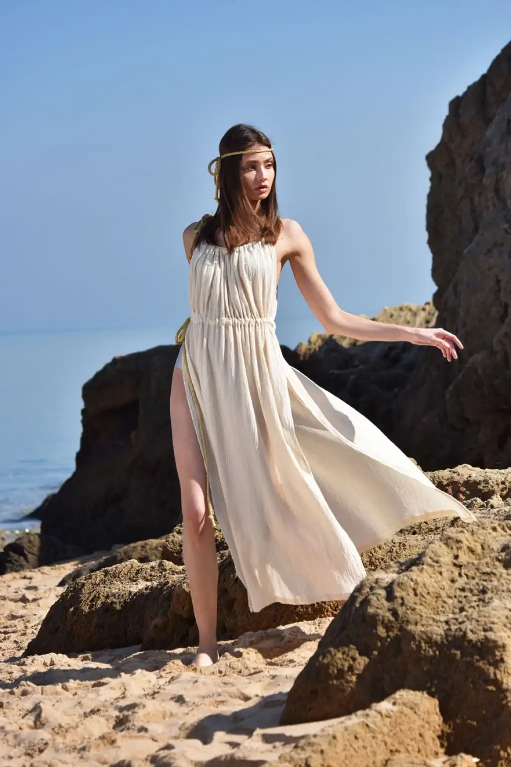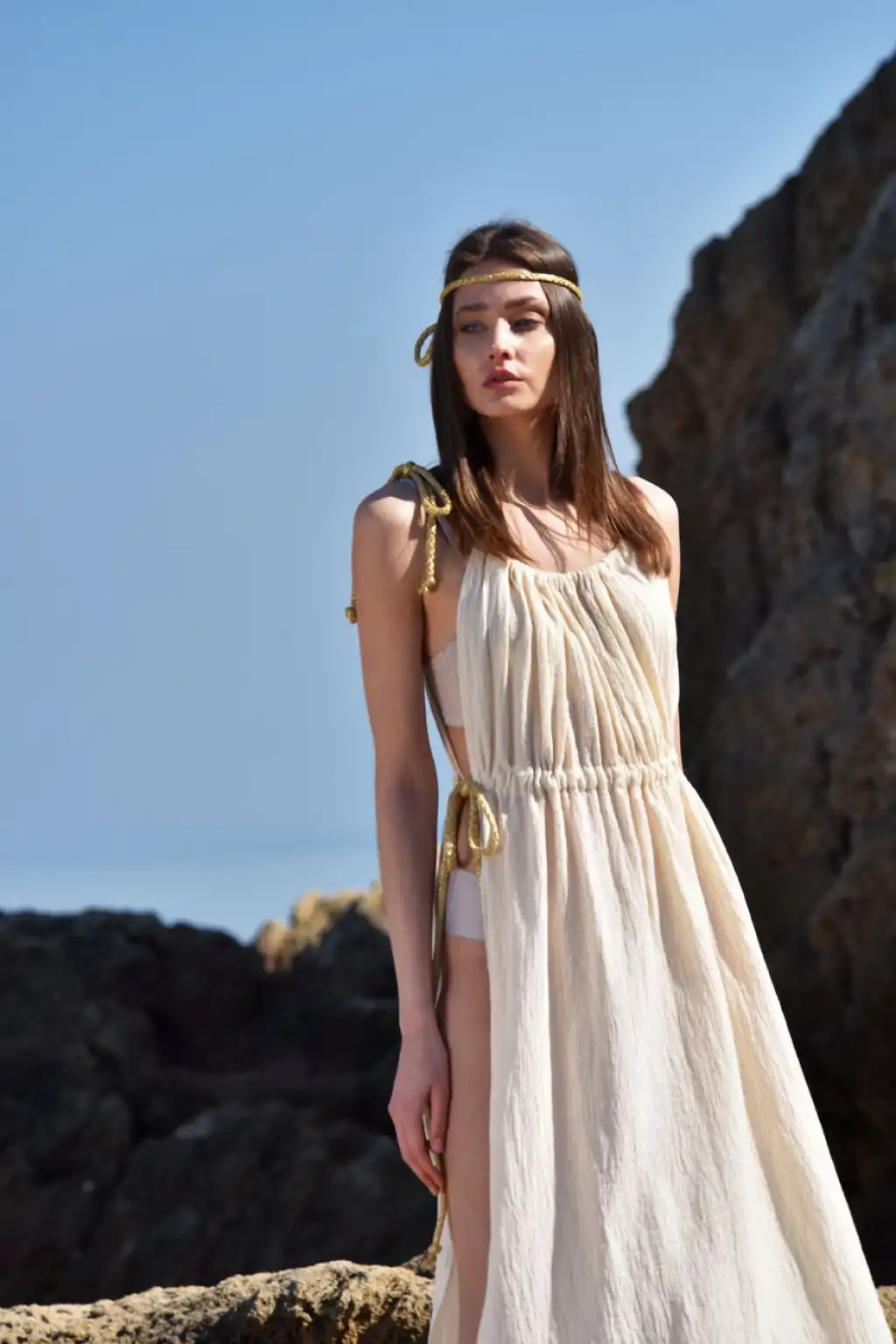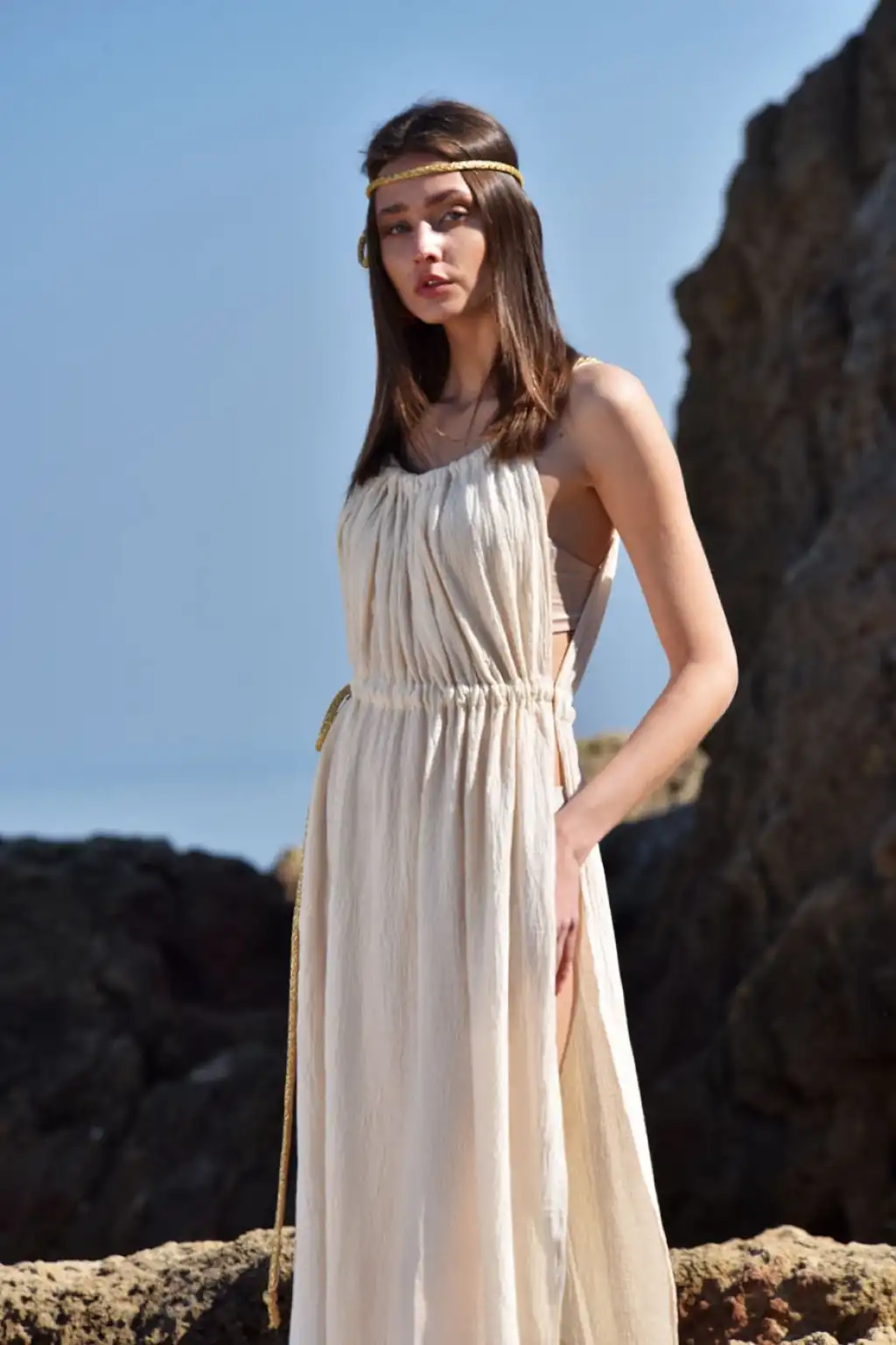 CLEOPATRA İP DETAYLI ASKILI ELBİSE