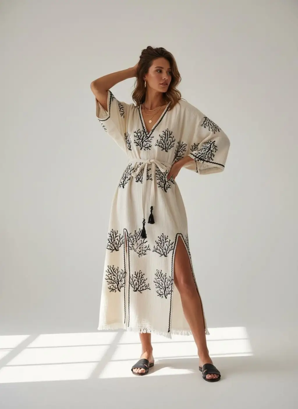 PALERMO PAMUK DOKUMA BOHEM ELBİSE