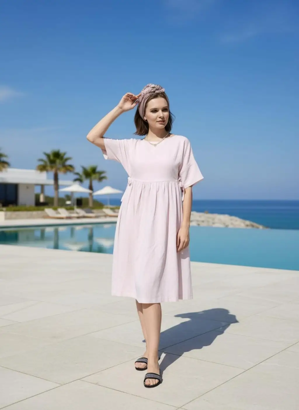 Yandanlar bağlamalı Şile Bezi Midi Boy Elbise