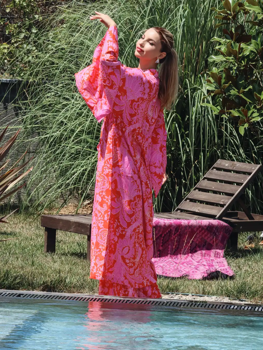 FERNS TAHTA BASKILI MÜSLİN KAFTAN