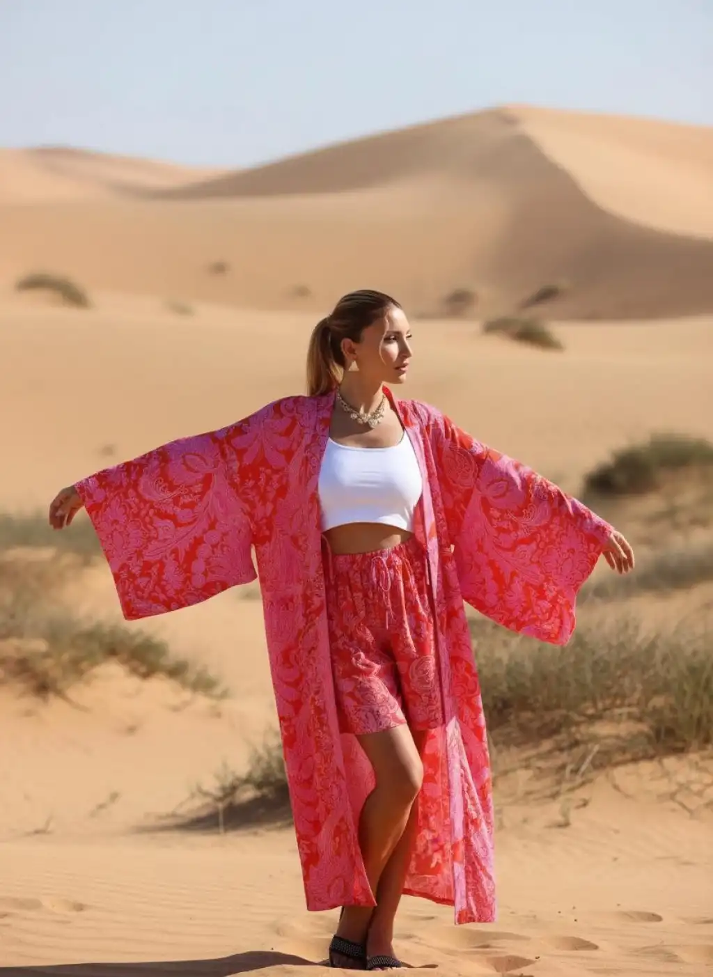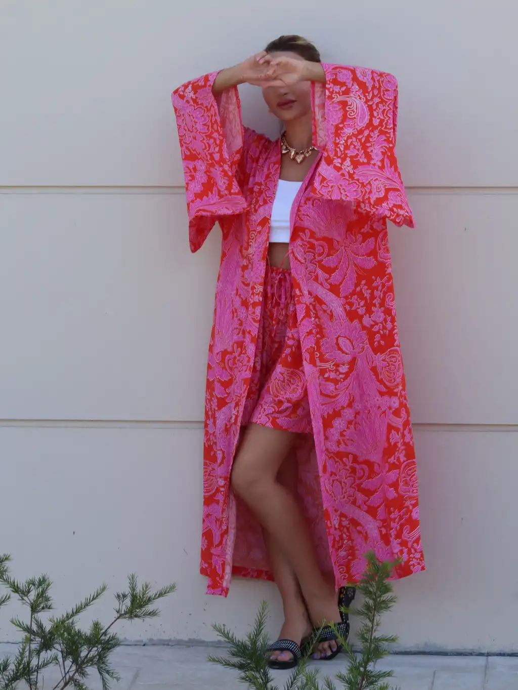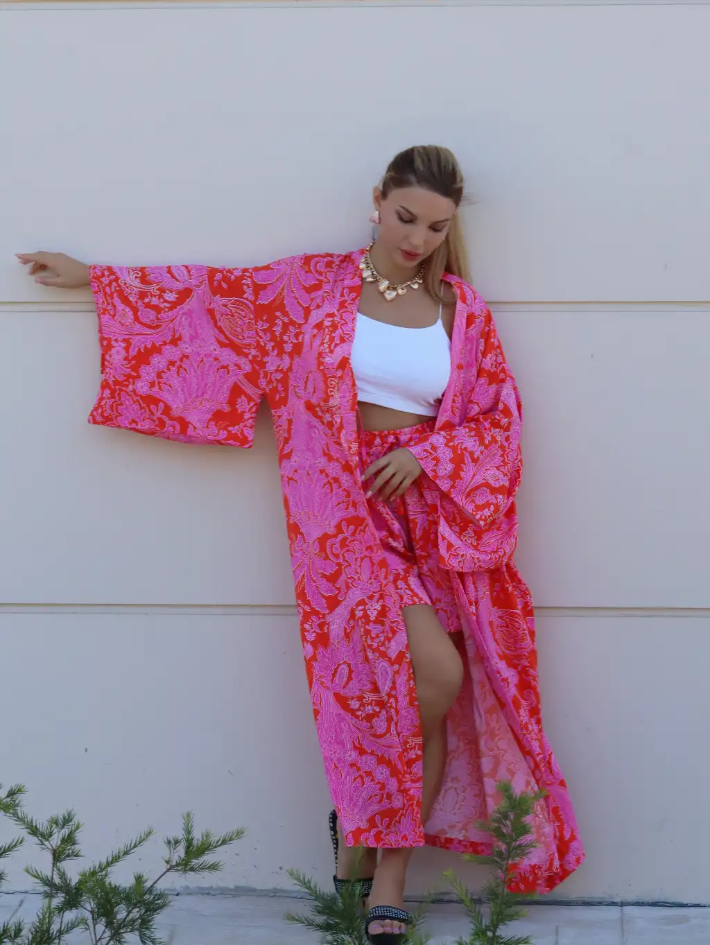 JAKARTA ŞAL DESEN VİSKON KİMONO & ŞORT TAKIM