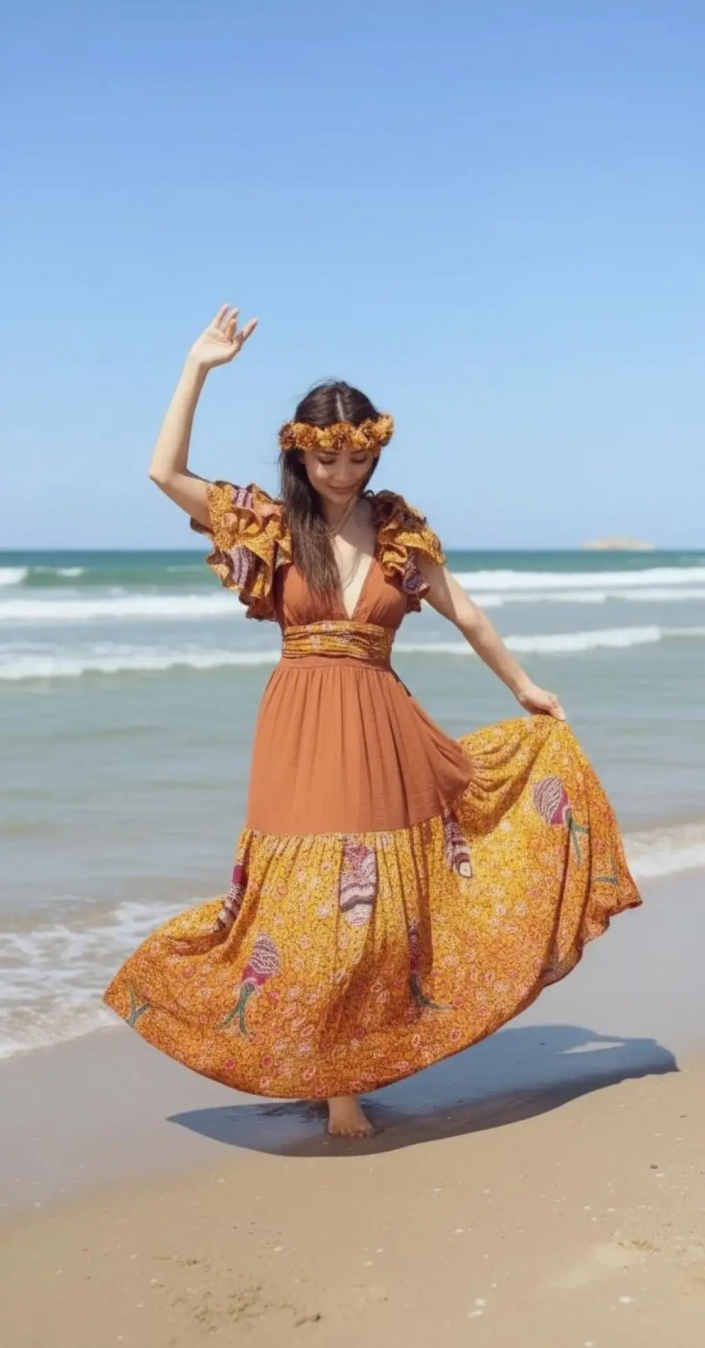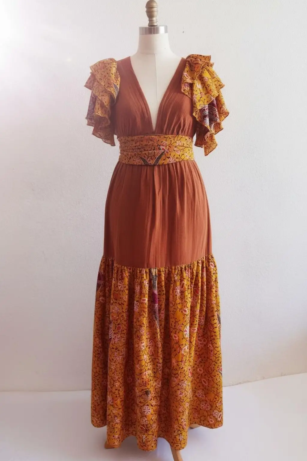 AZİZE BOHEM STİL MÜSLİN ELBİSE / Vintage Turuncu