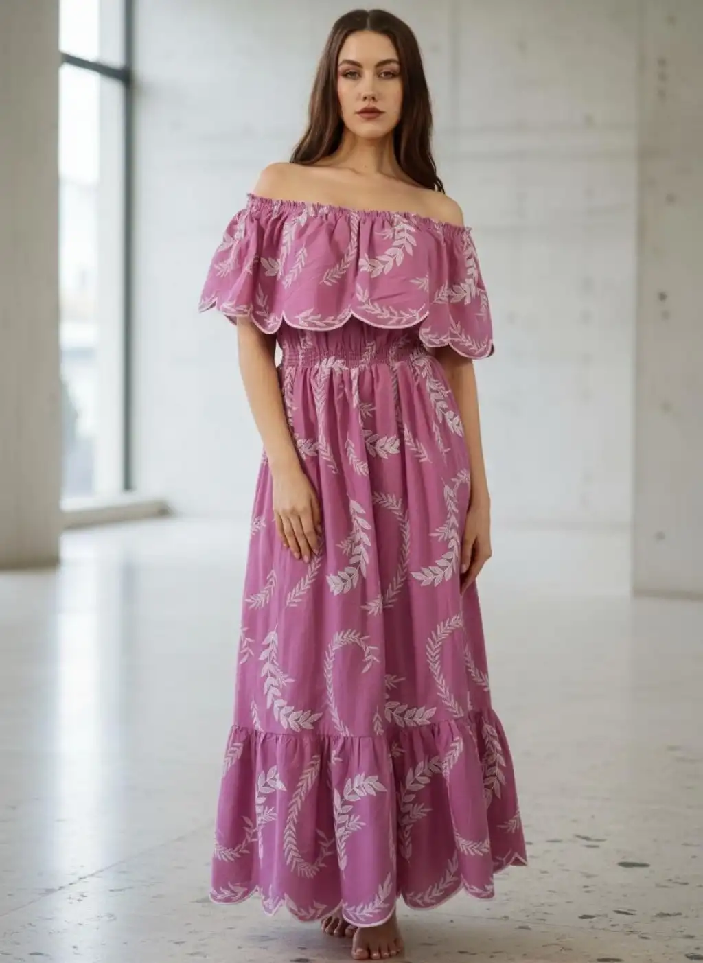 PALERMO PAMUK DOKUMA BOHEM ELBİSE