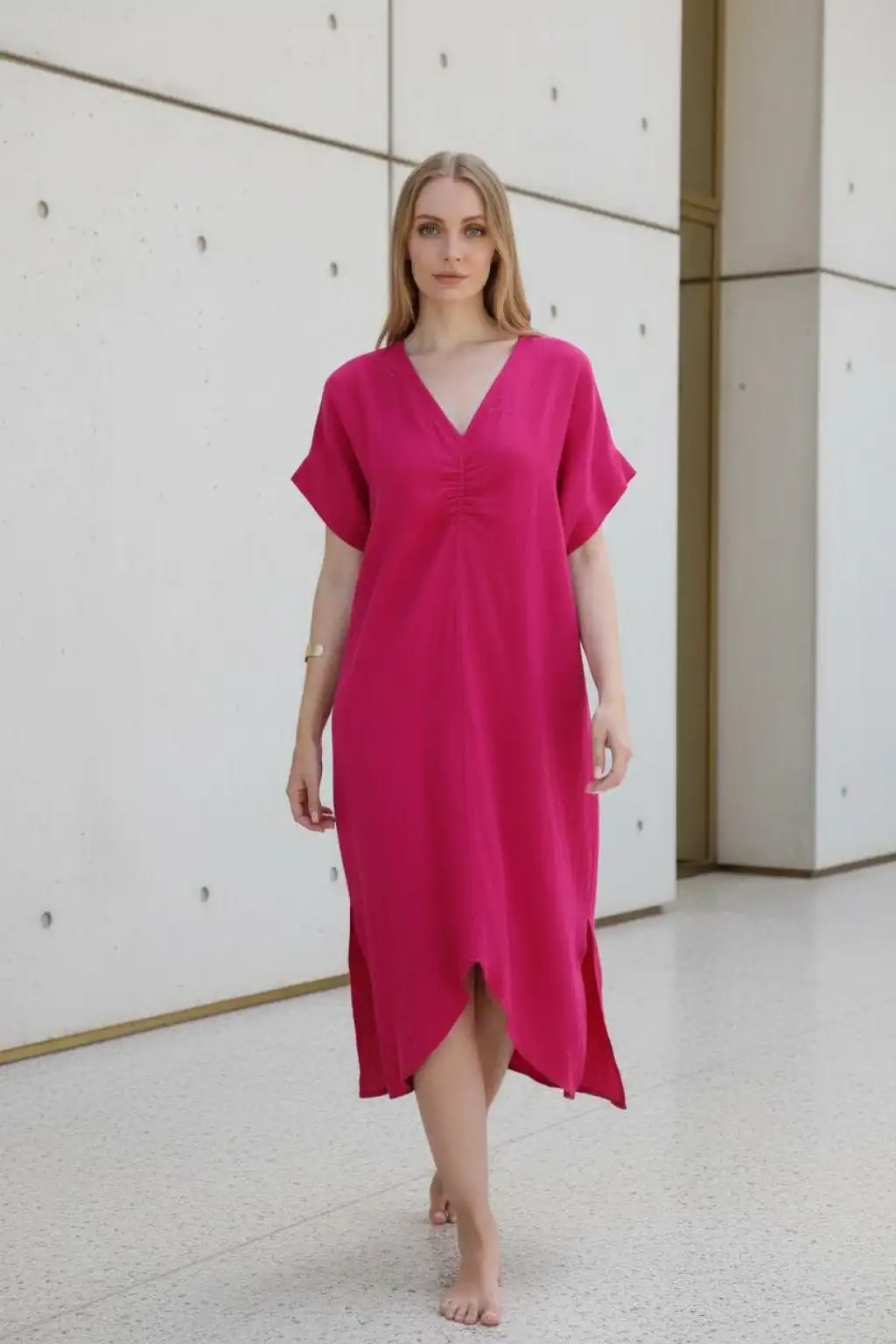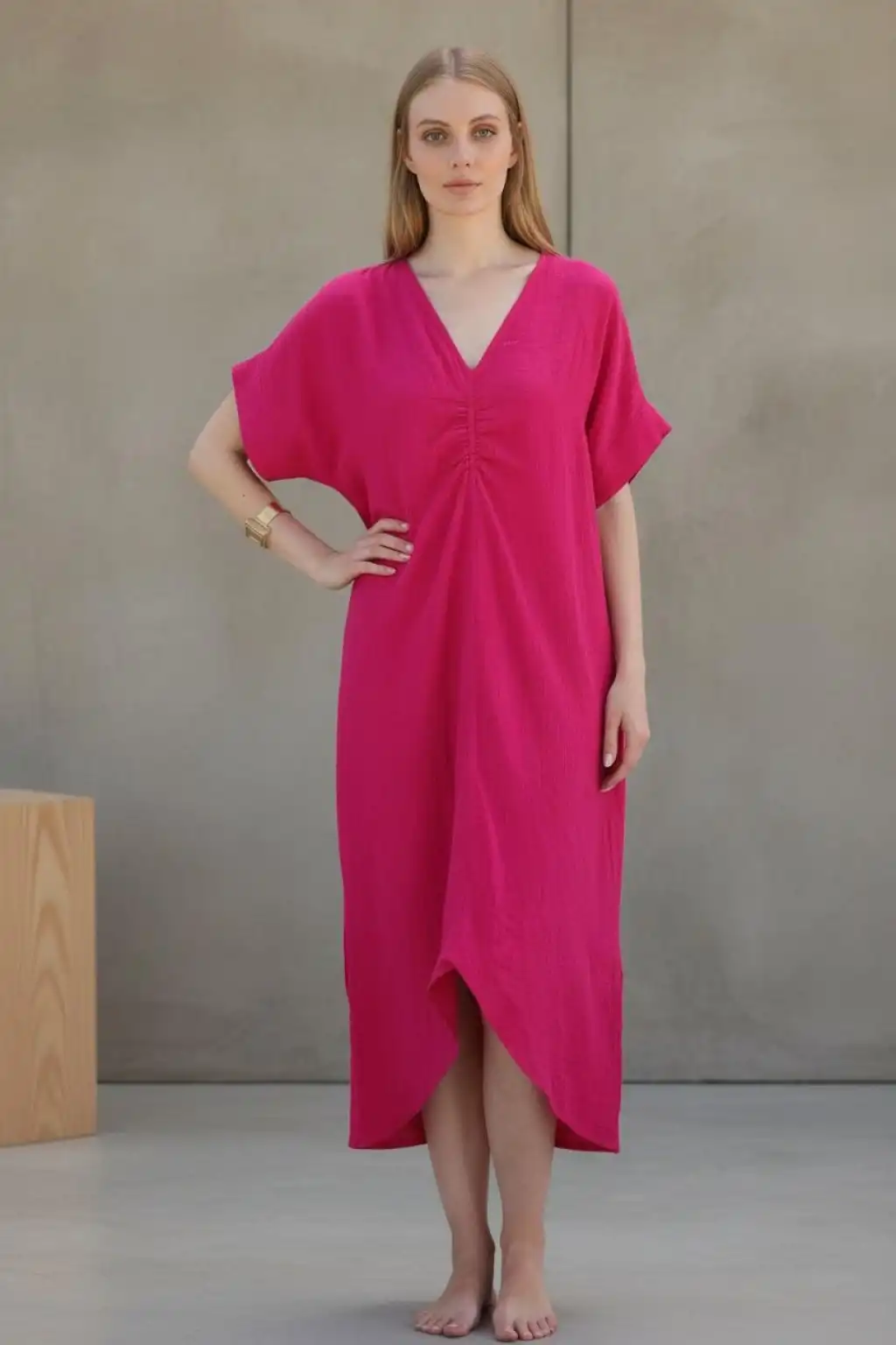 DORA YALDIZLI MÜSLİN ELBİSE / fuşya