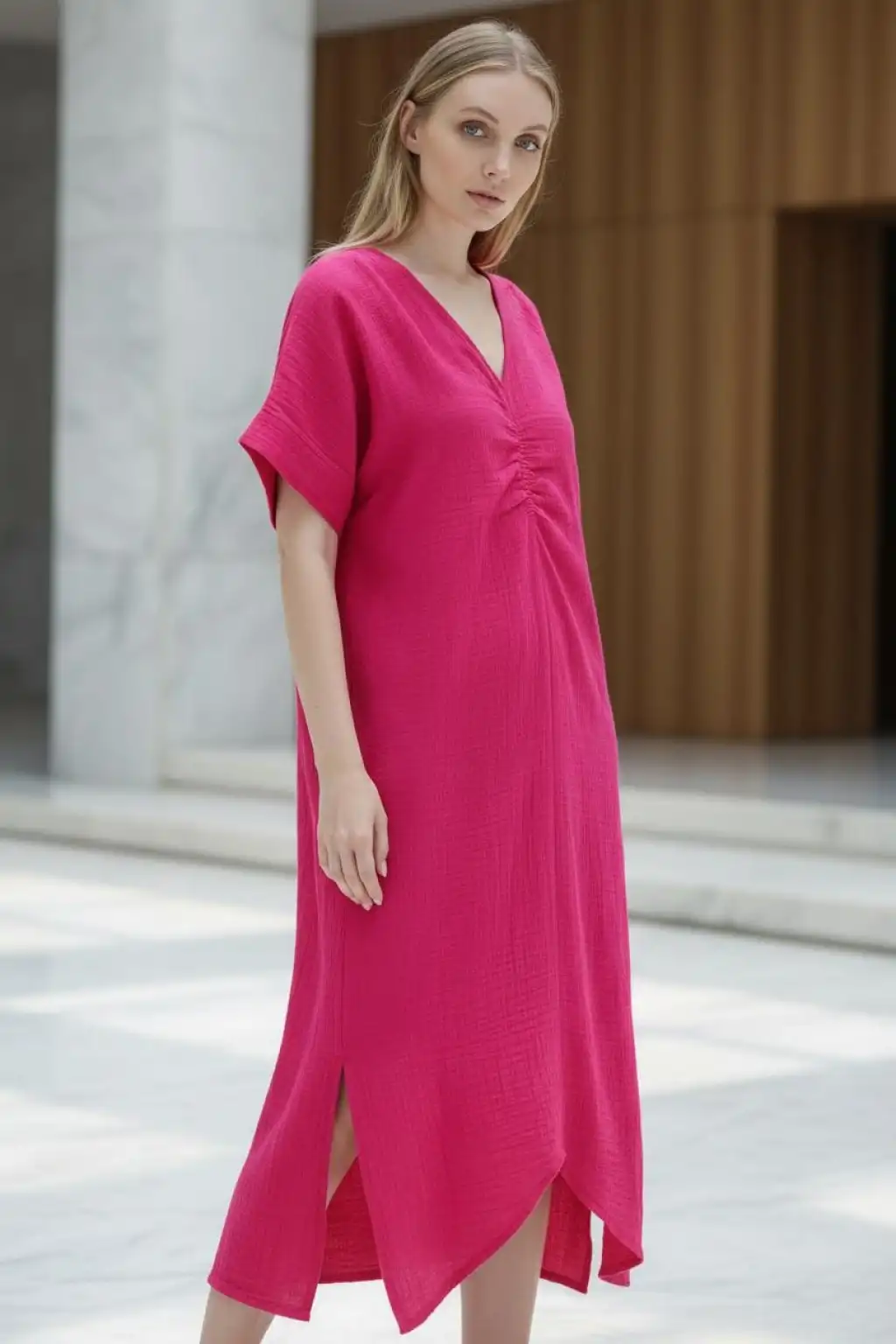 Kısa Kollu Midi Boy Müslin Elbise
