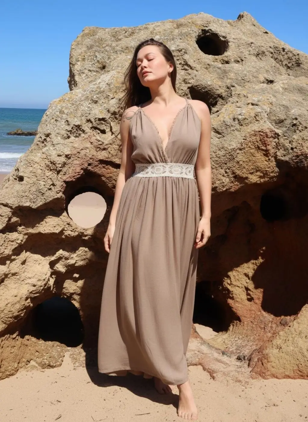 Elmas Beli Payet Dantel detaylı Elbise , içi eteği, uçucu kumaşı ve bohem stili ile öne çıkıyor,