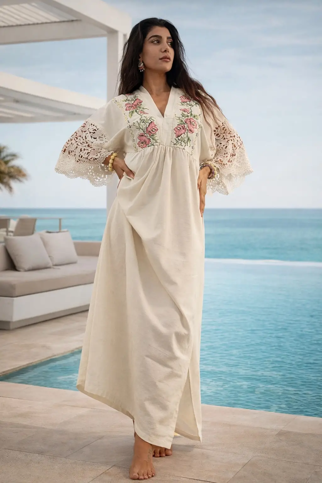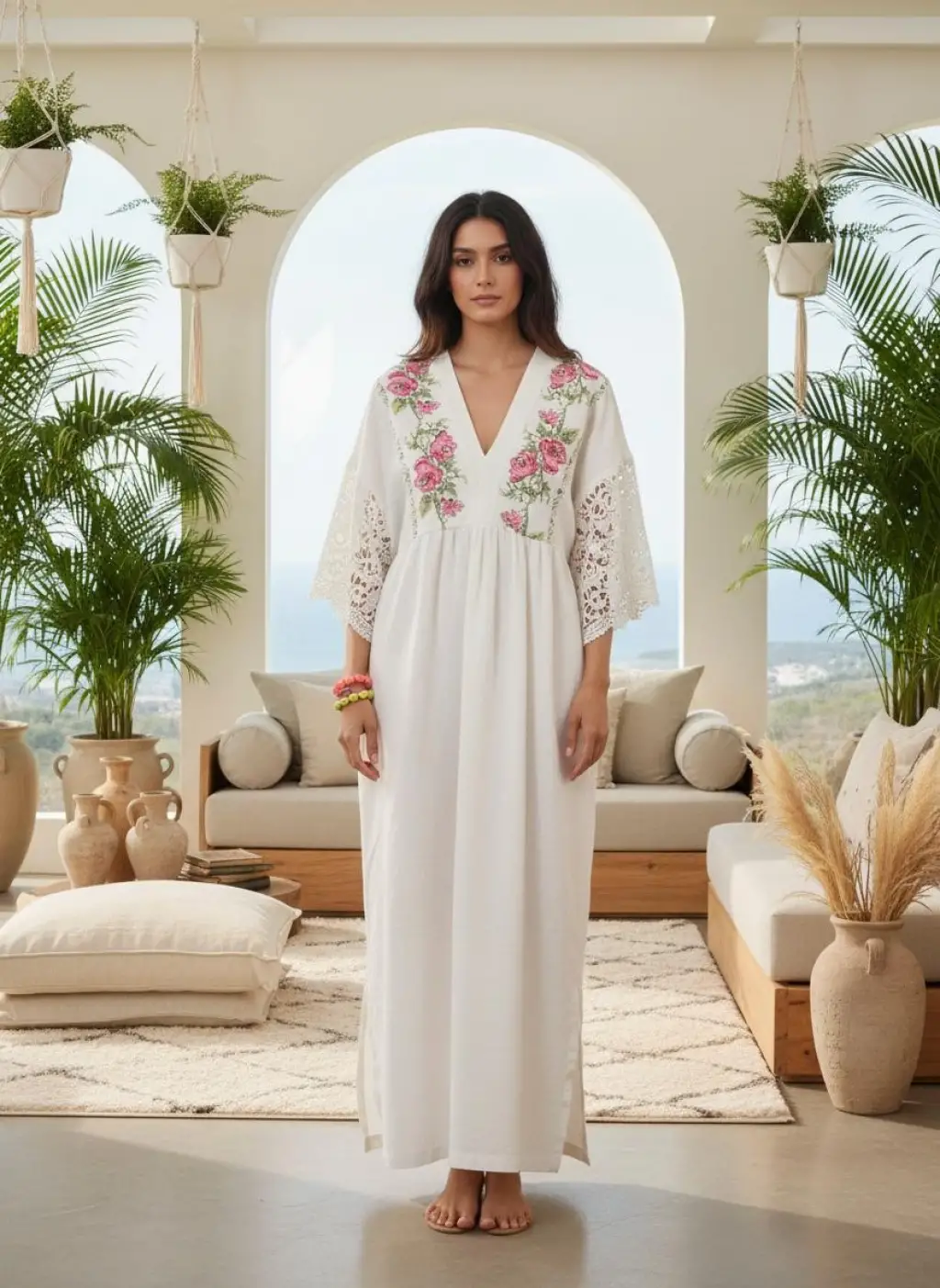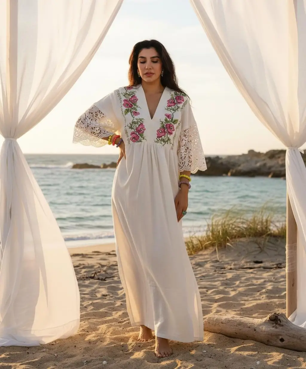 Doğal pamuk kumaşı ve türk stili nakış detayı ile benzersiz.