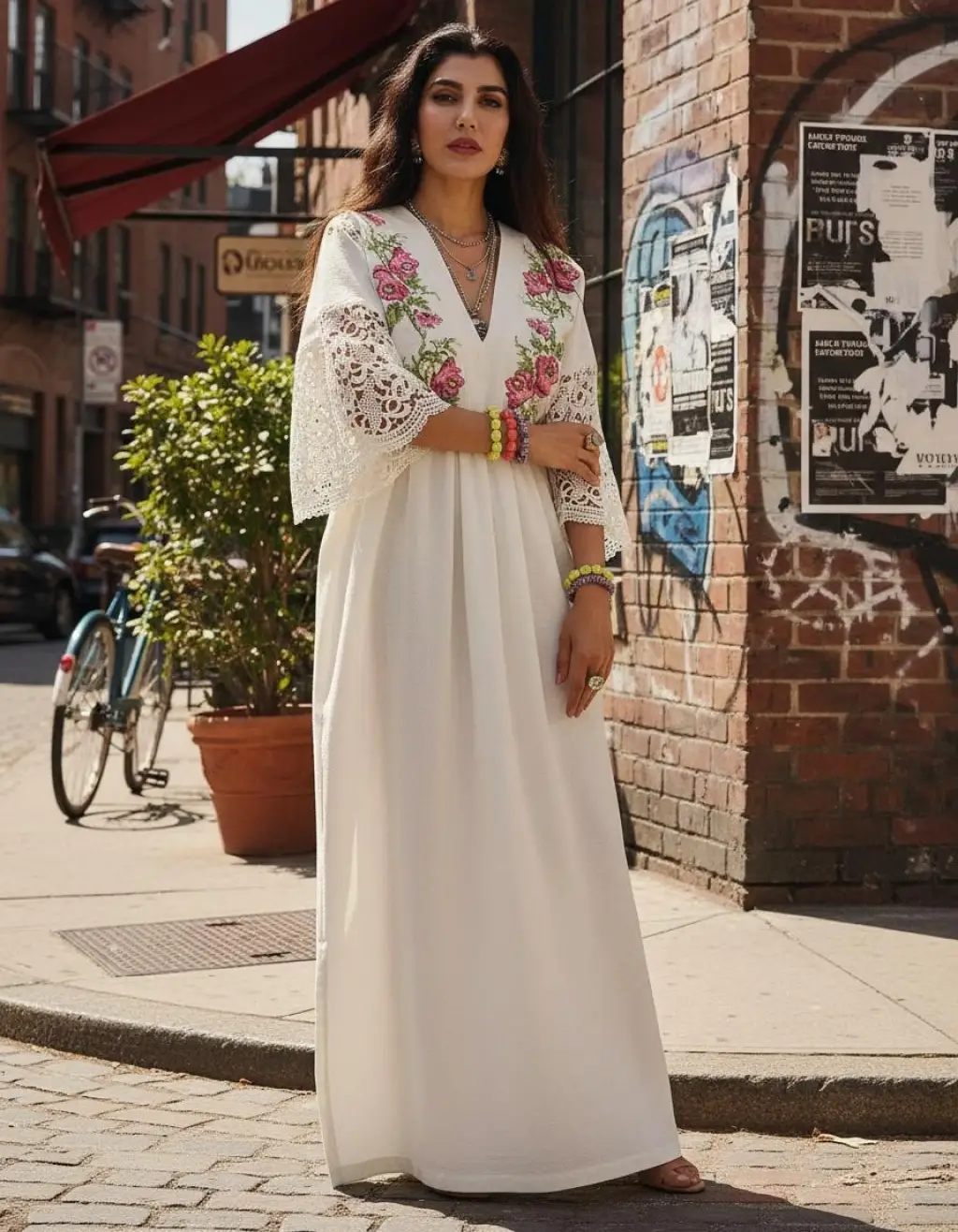 EVA MÜSLİN KATLI BOHEM ELBİSE
