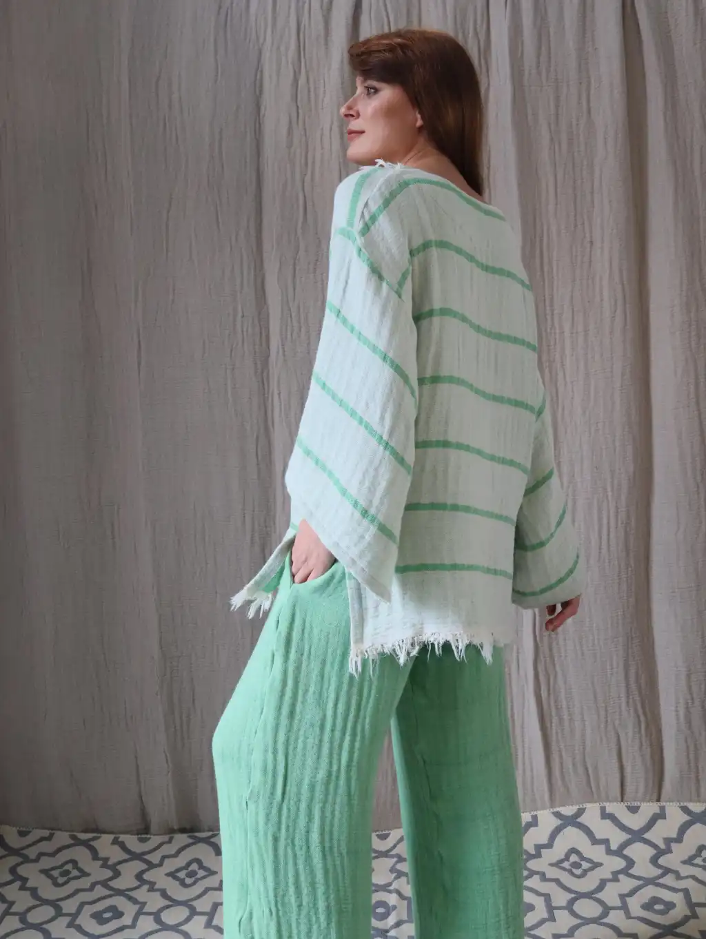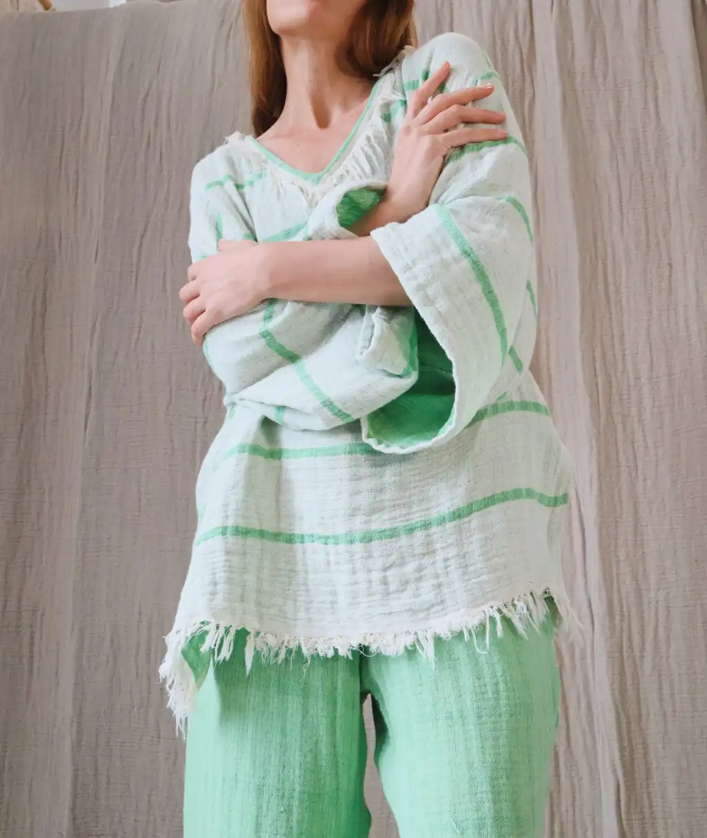 SUNA MÜSLİN BLUZ PANTOLON TAKIM / yeşil