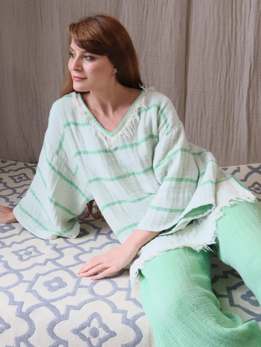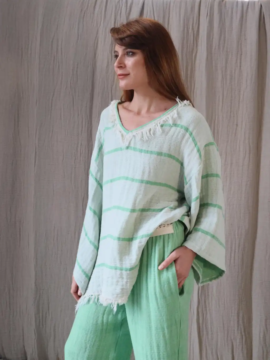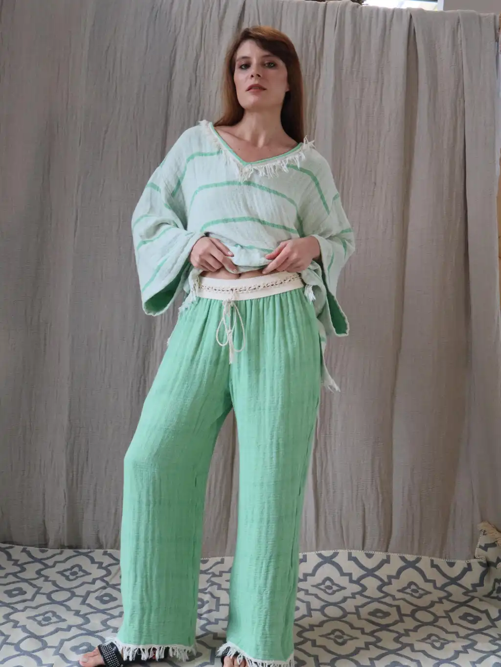 SOUL MÜSLİN BLUZ PANTOLON TAKIM / Fıstık Yeşili
