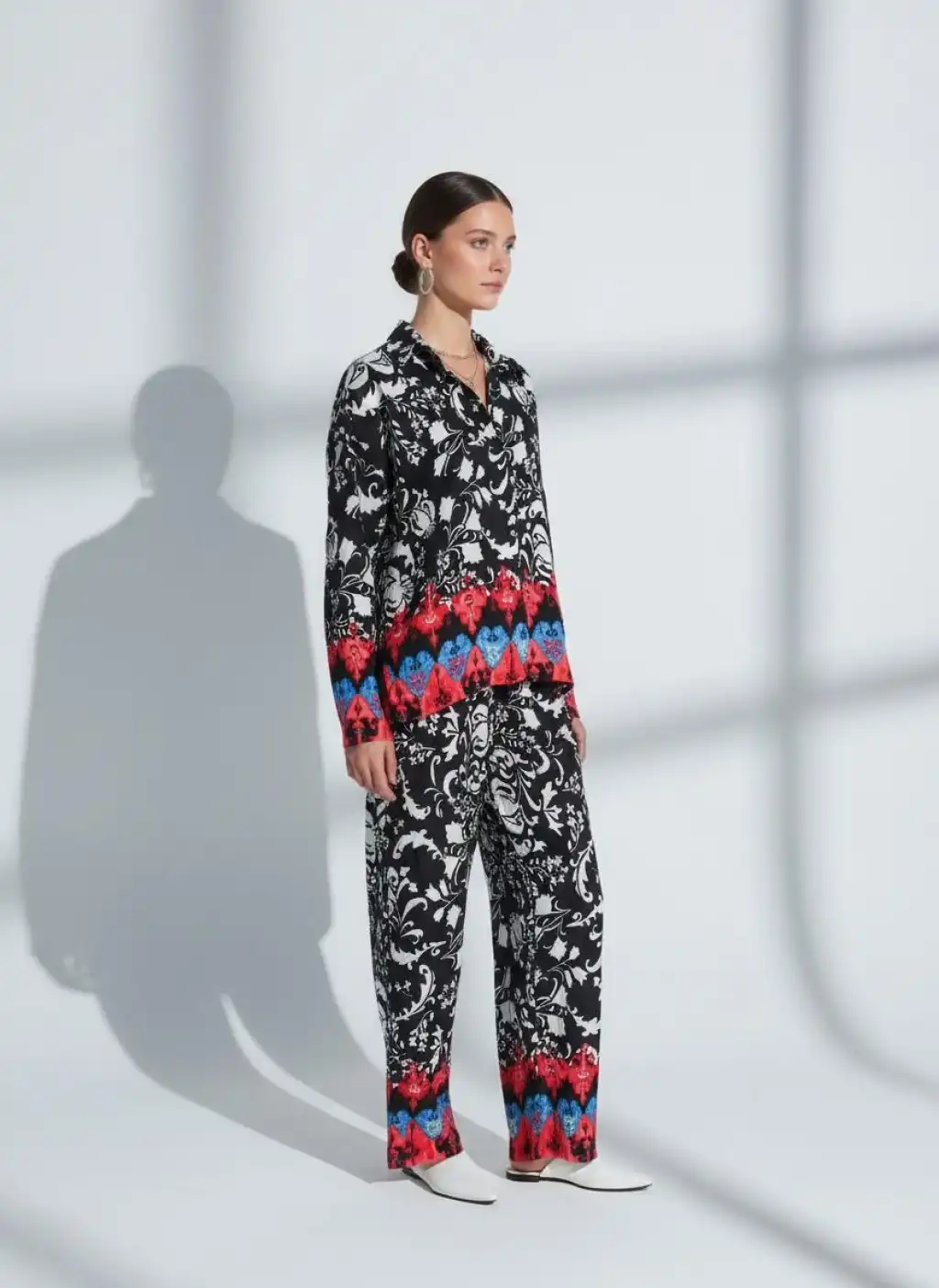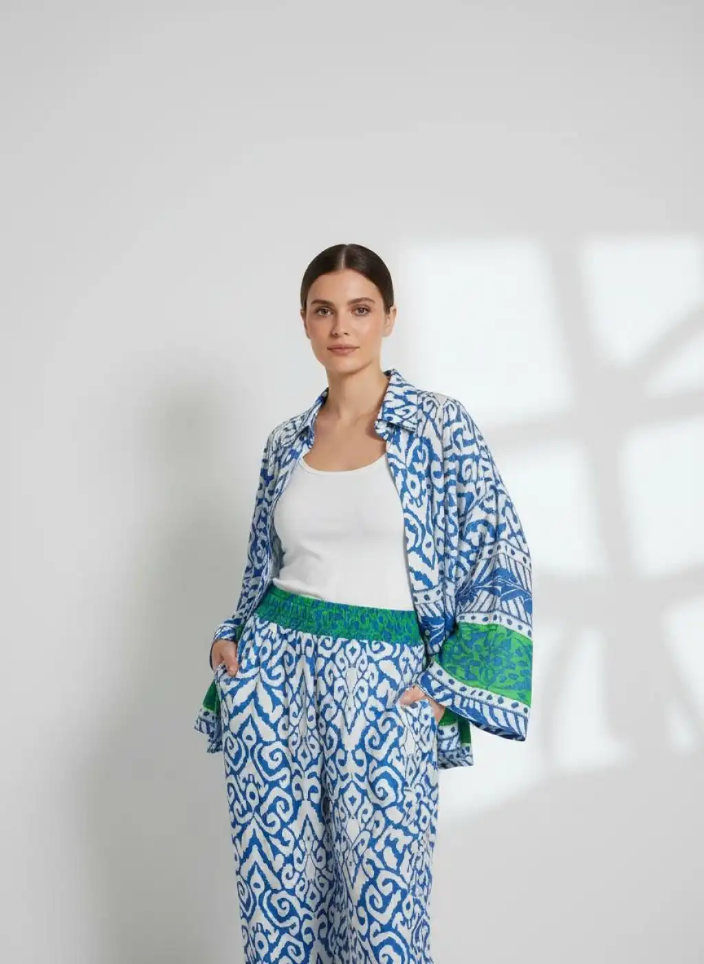 Oversize viskon etnik desenli gömlekli takım