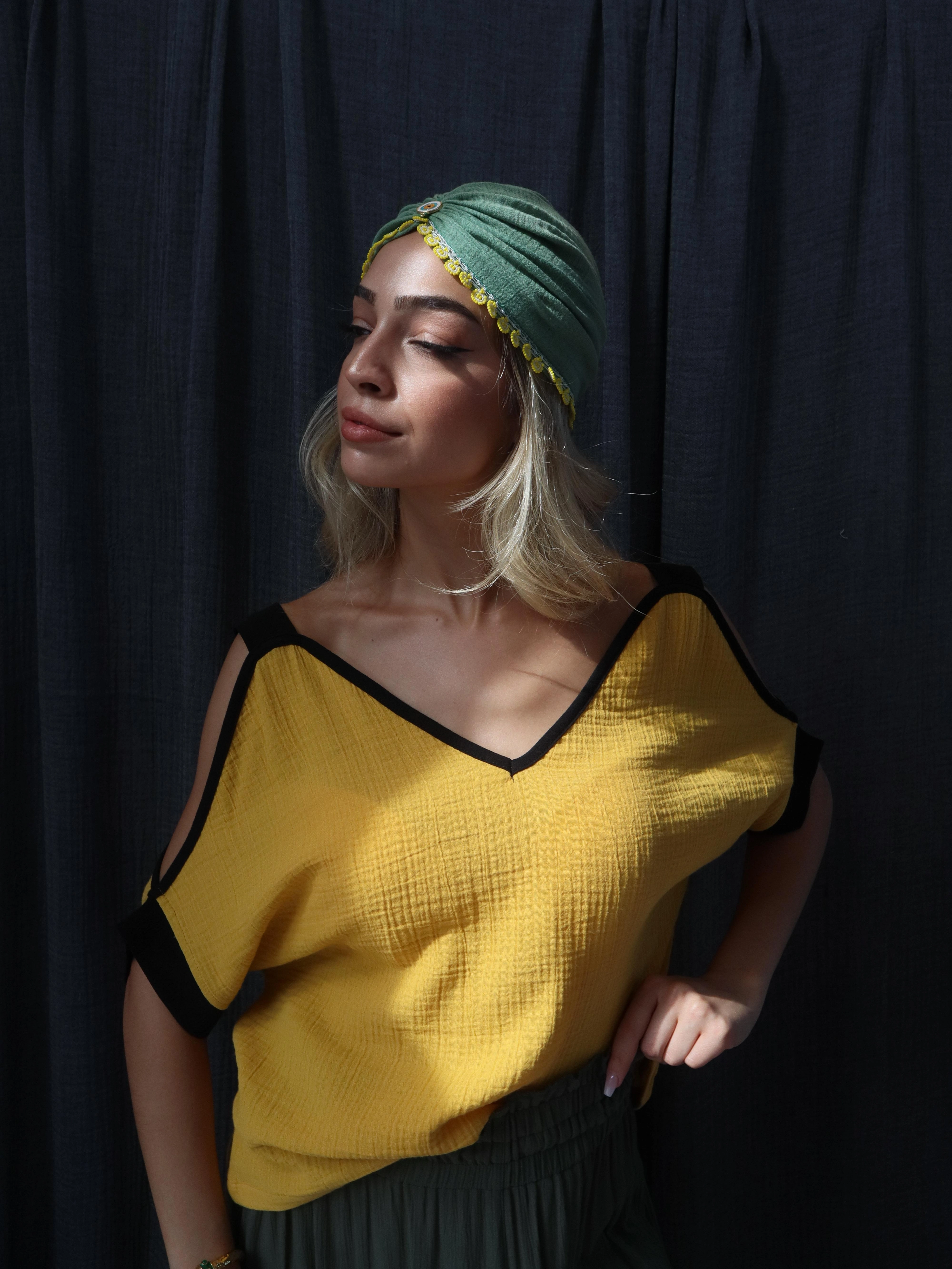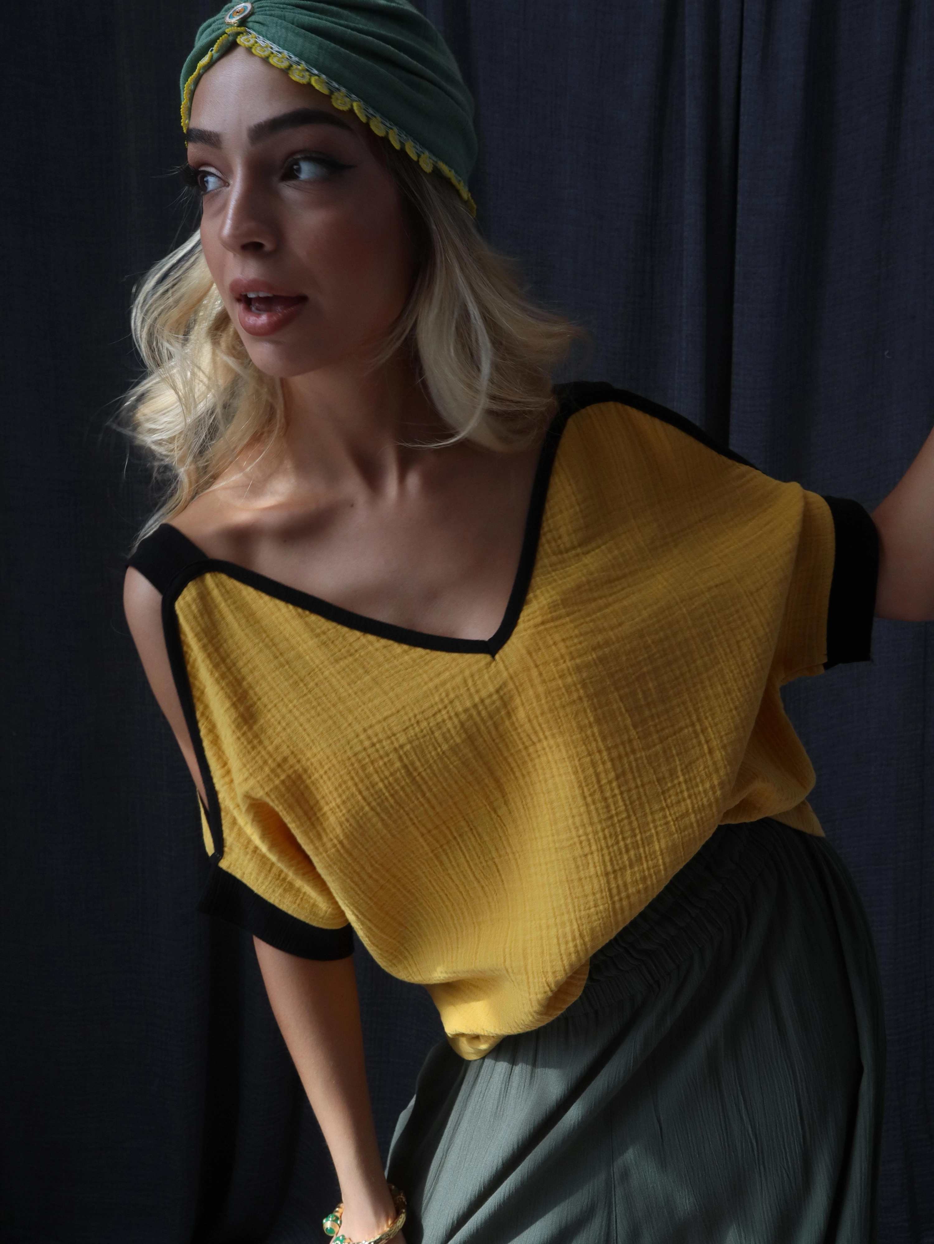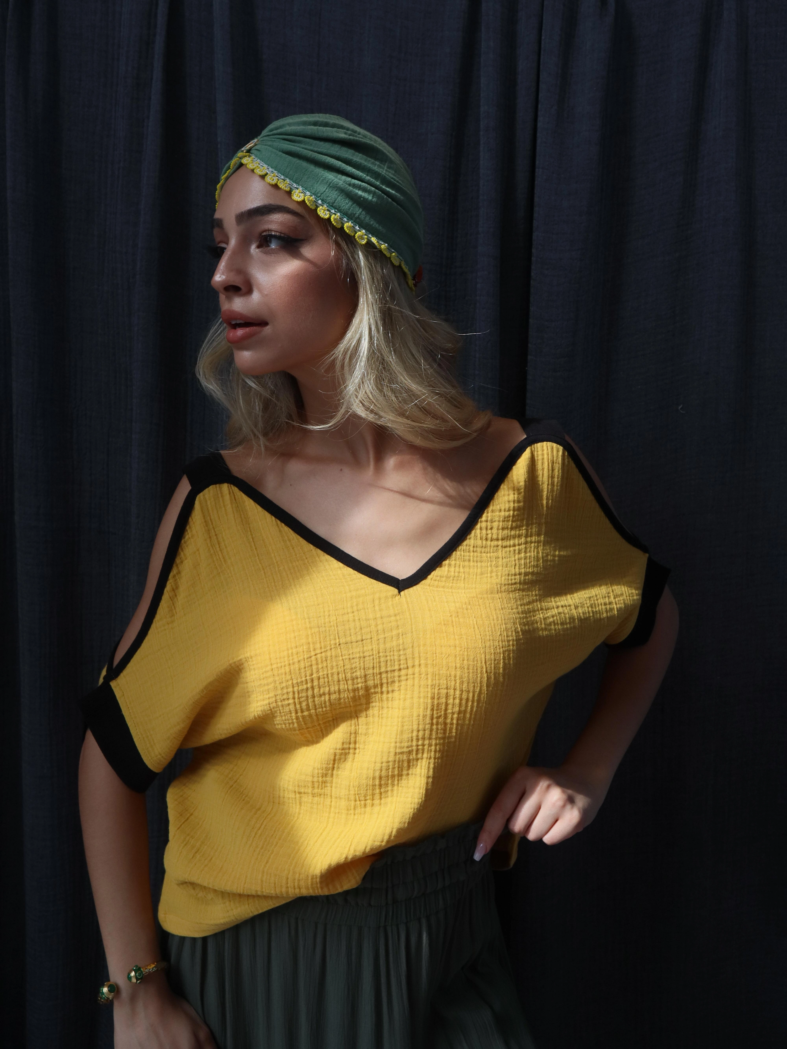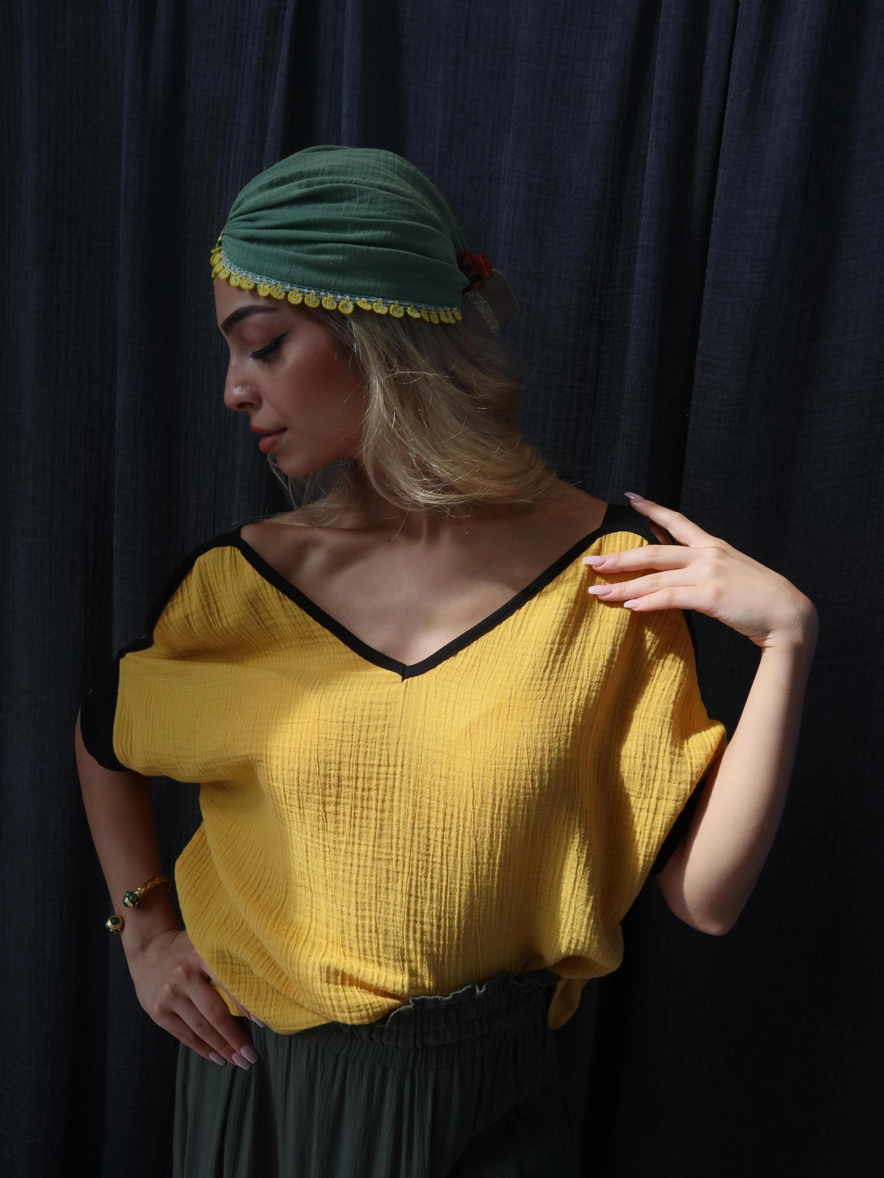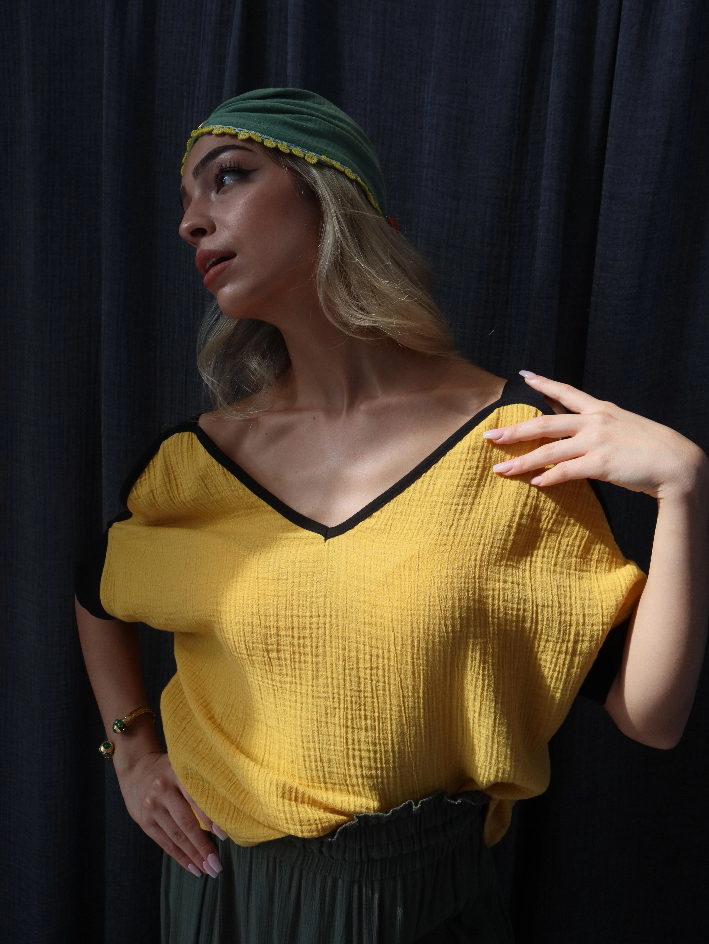 YAPRAK V YAKA Çift KAT MÜSLİN BLUZ