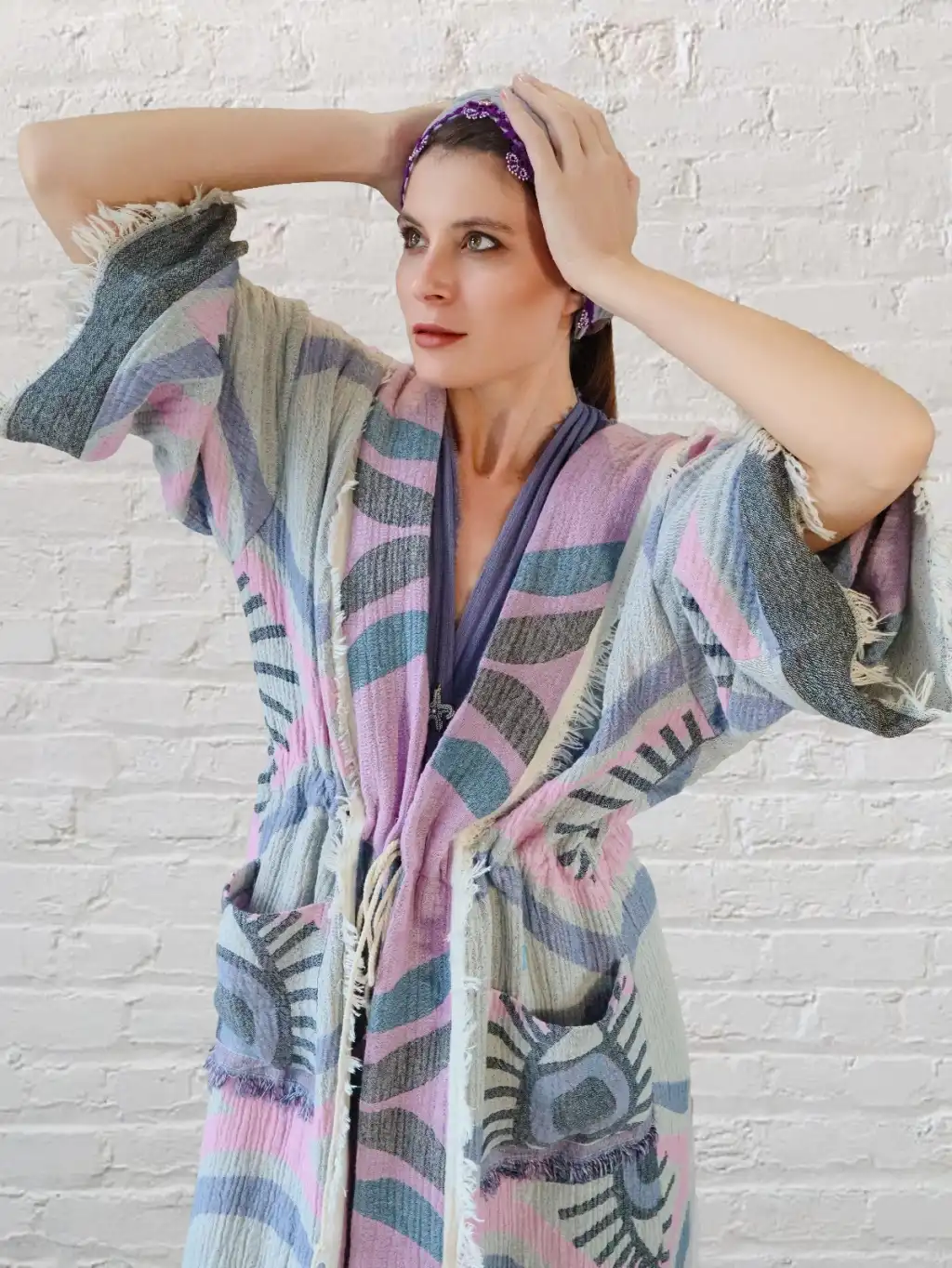 TILSIM PAMUK DOKUMA TAŞ BASKI KİMONO