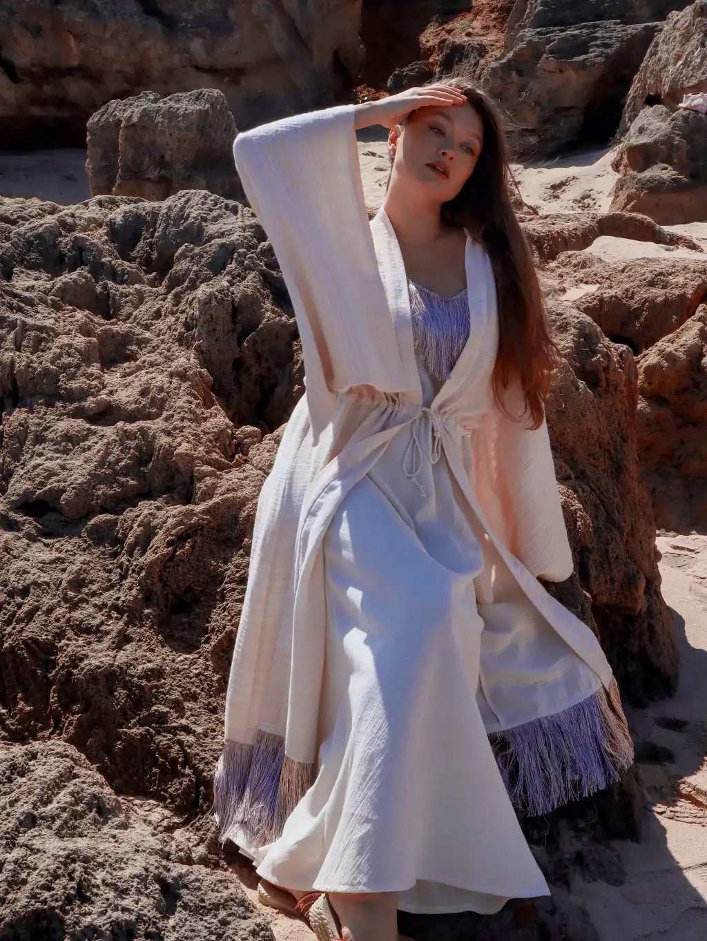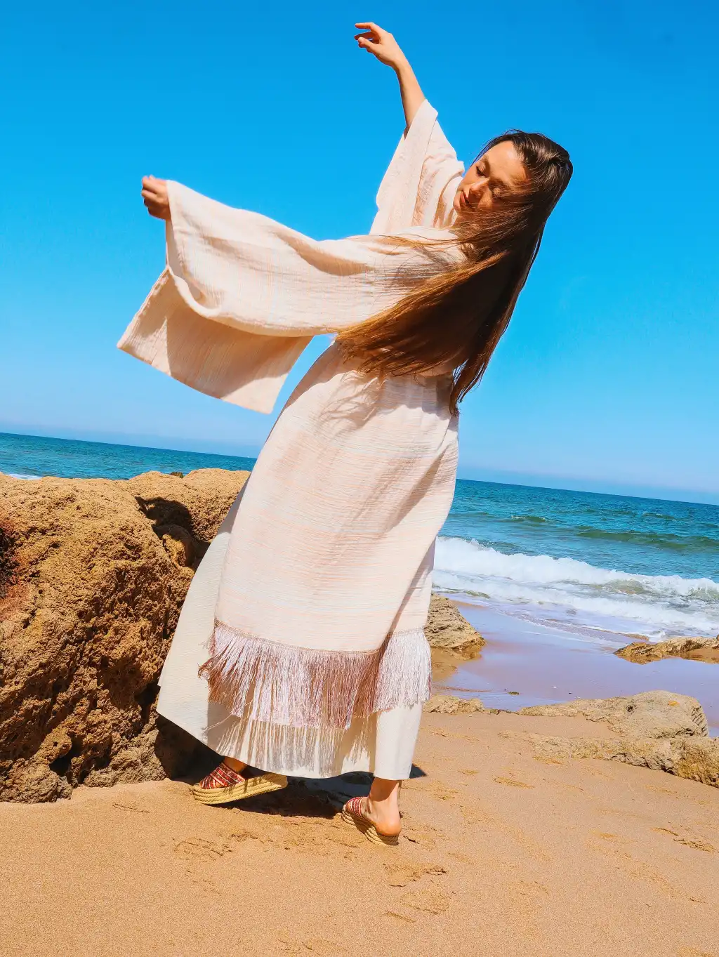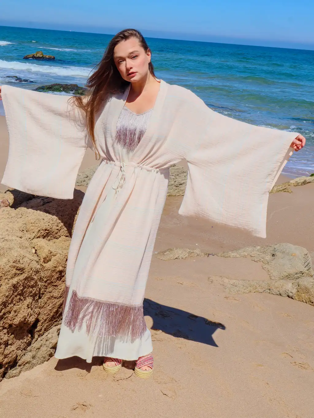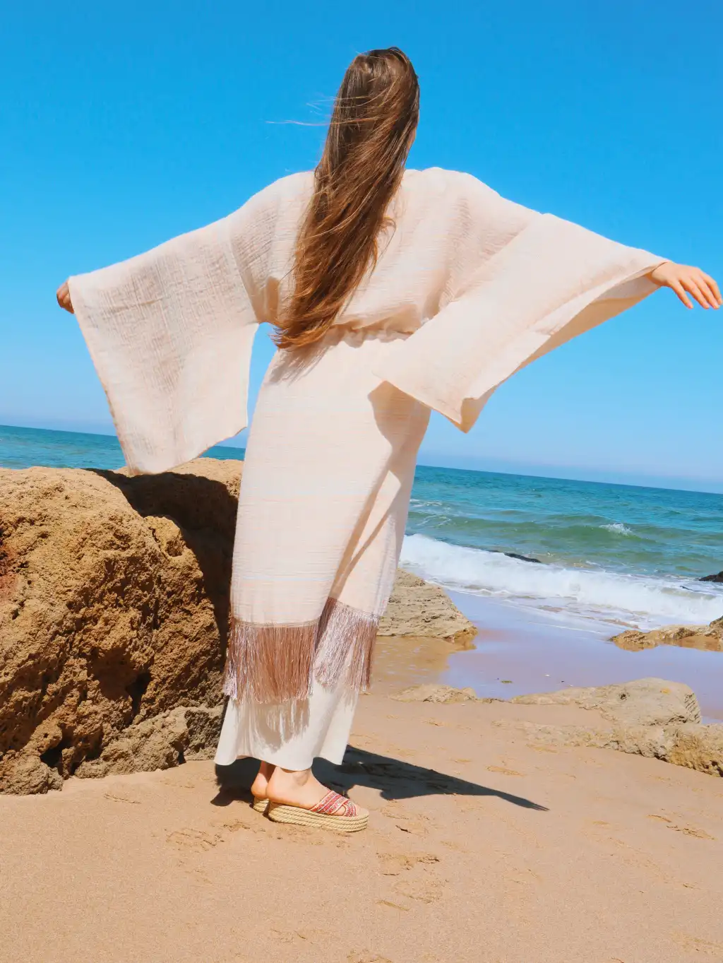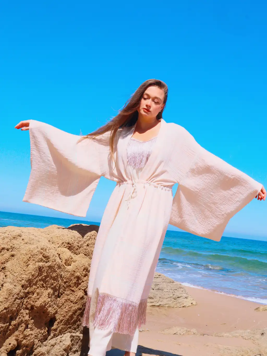 Jülide Japone Kollu Müslin Püskül Detaylı Kaftan,