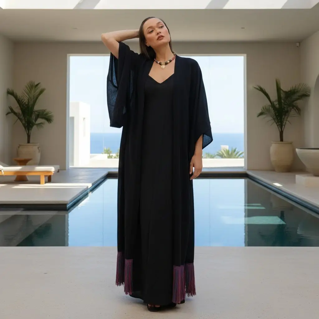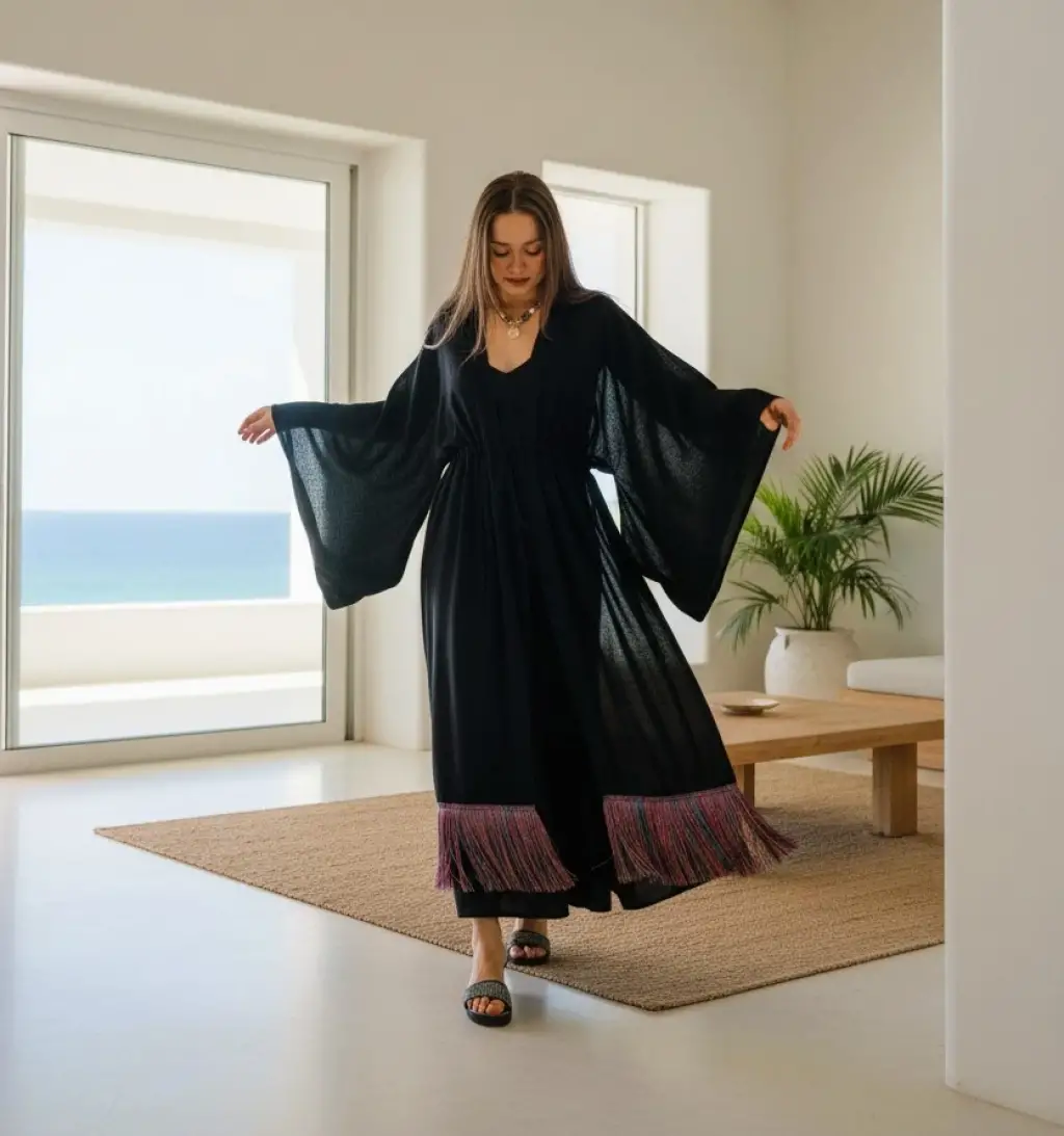 Jülide Japone Kollu Müslin Püskül Detaylı Kaftan,