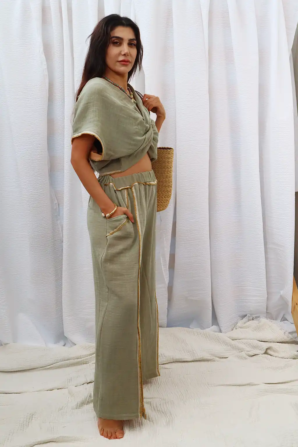 MUMBAI MÜSLİN CROP & PANTOLON TAKIM / Yeşil