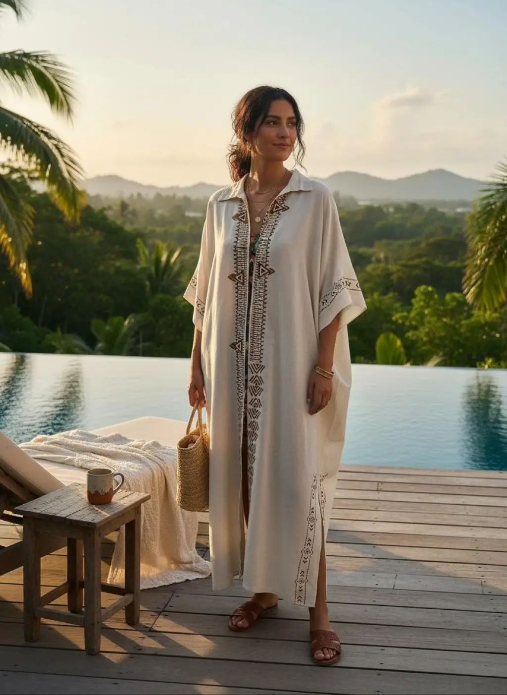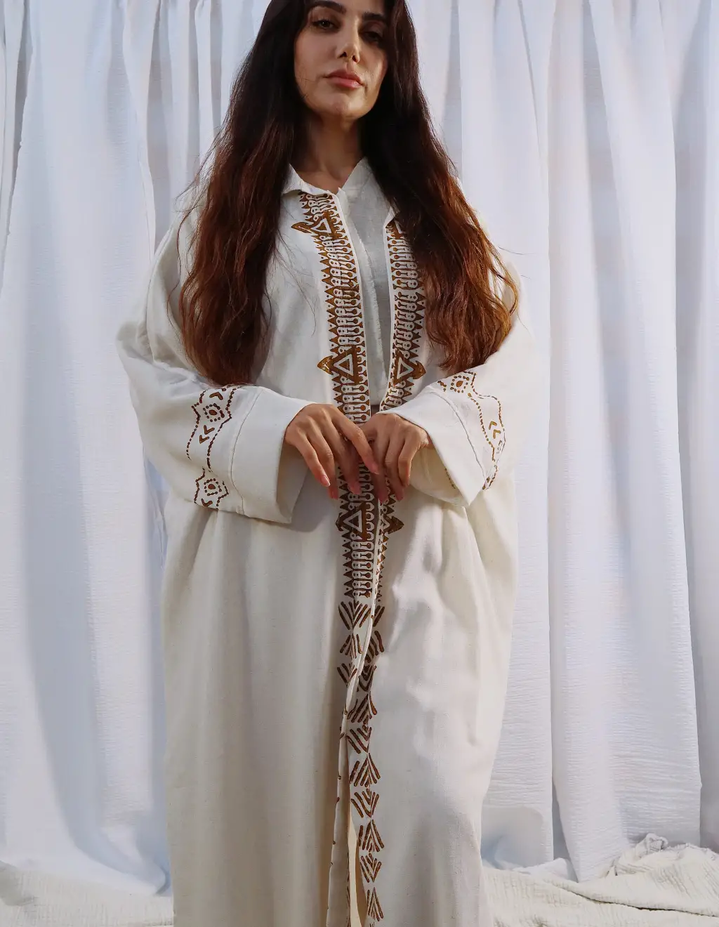 FERNS TAHTA BASKILI MÜSLİN KAFTAN
