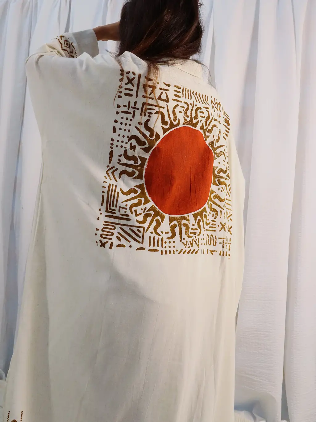 HAYAT AĞACI TAHTA BASKILI DOKUMA KAFTAN / Naturel