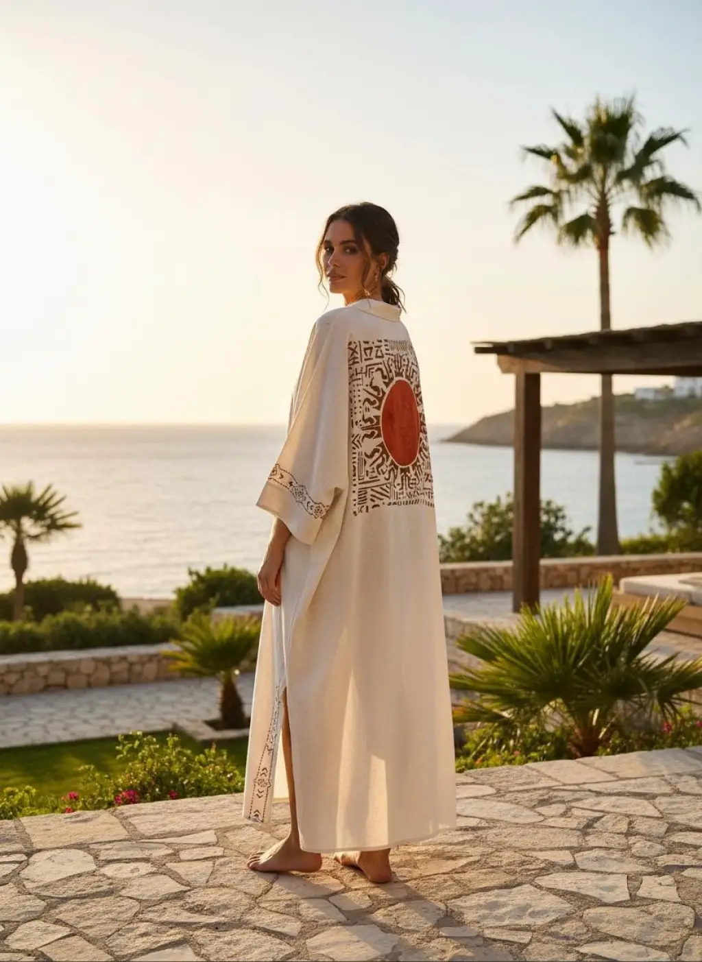 El Baskısı Keten Bohem Kimono
