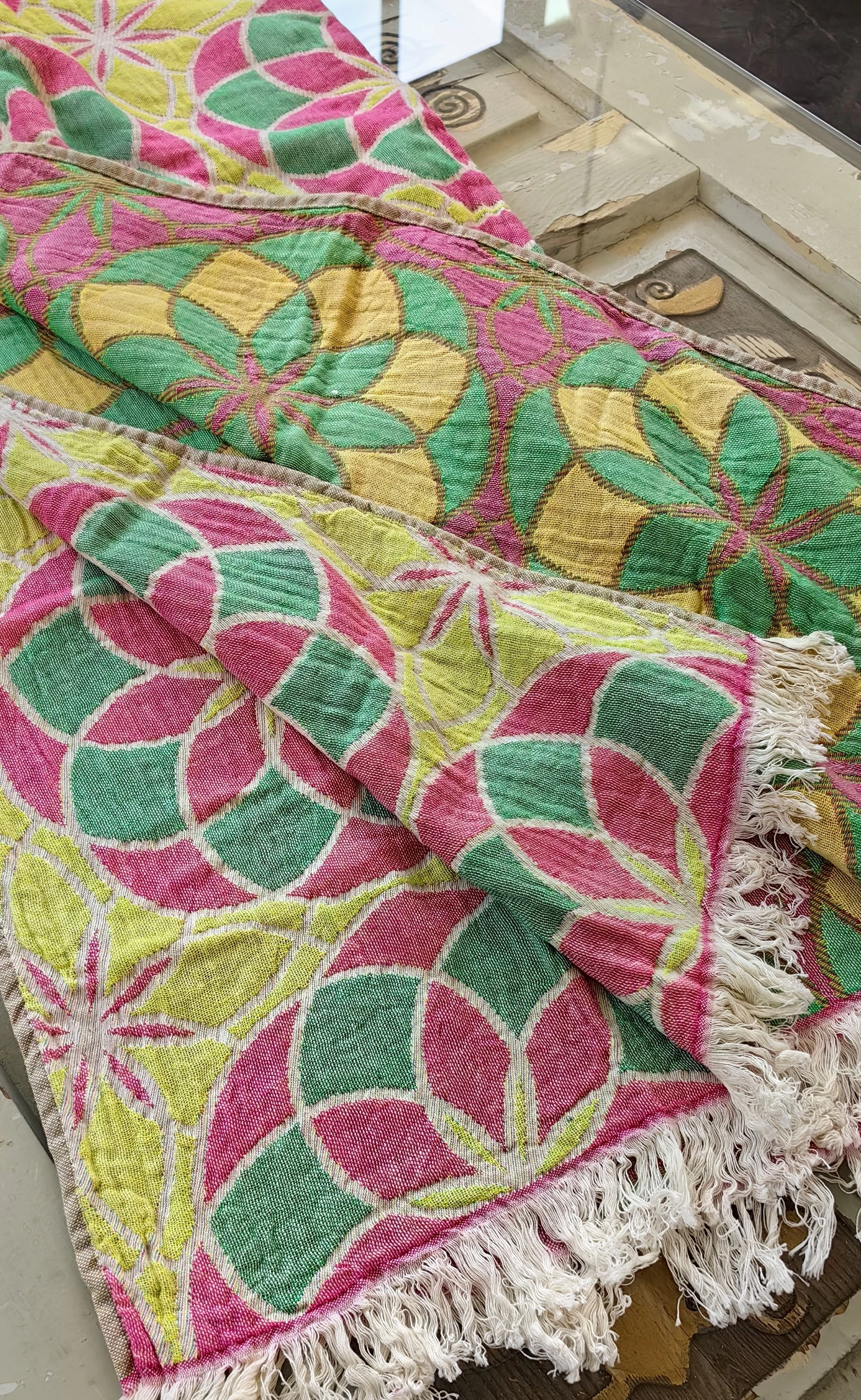 Yaşam Çiçeği desenli 7 kat müslin dokuma peştemal