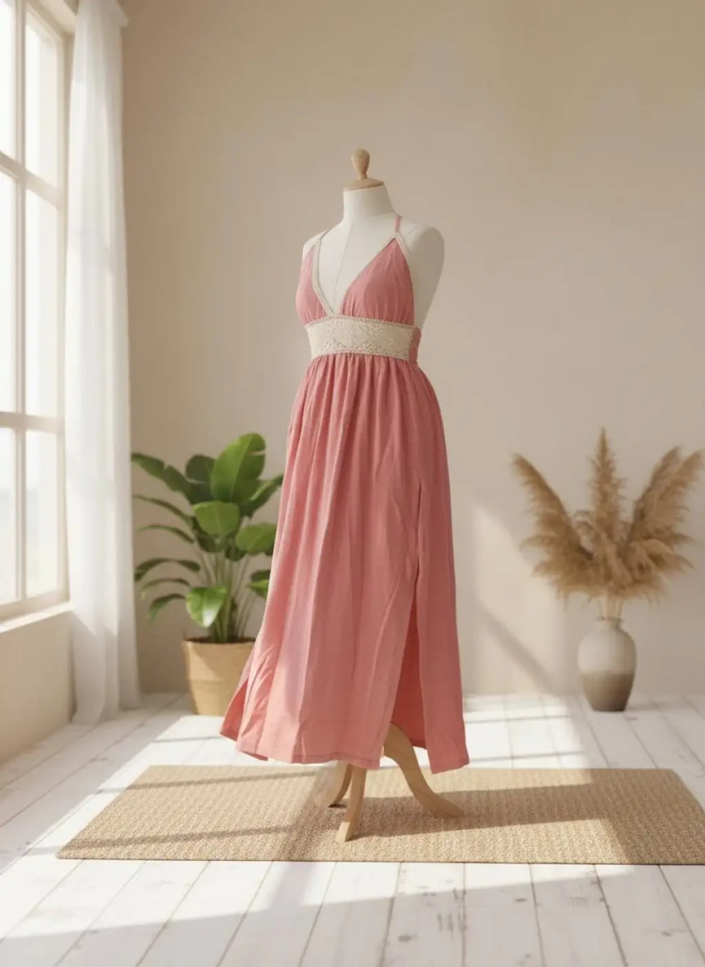 Doğal pamuk şile bezi, beli dantel detaylı, arkadan bağlanan kuşak ve lastil belli bohem elbisemiz 42 bedene kadar olmaktadır.