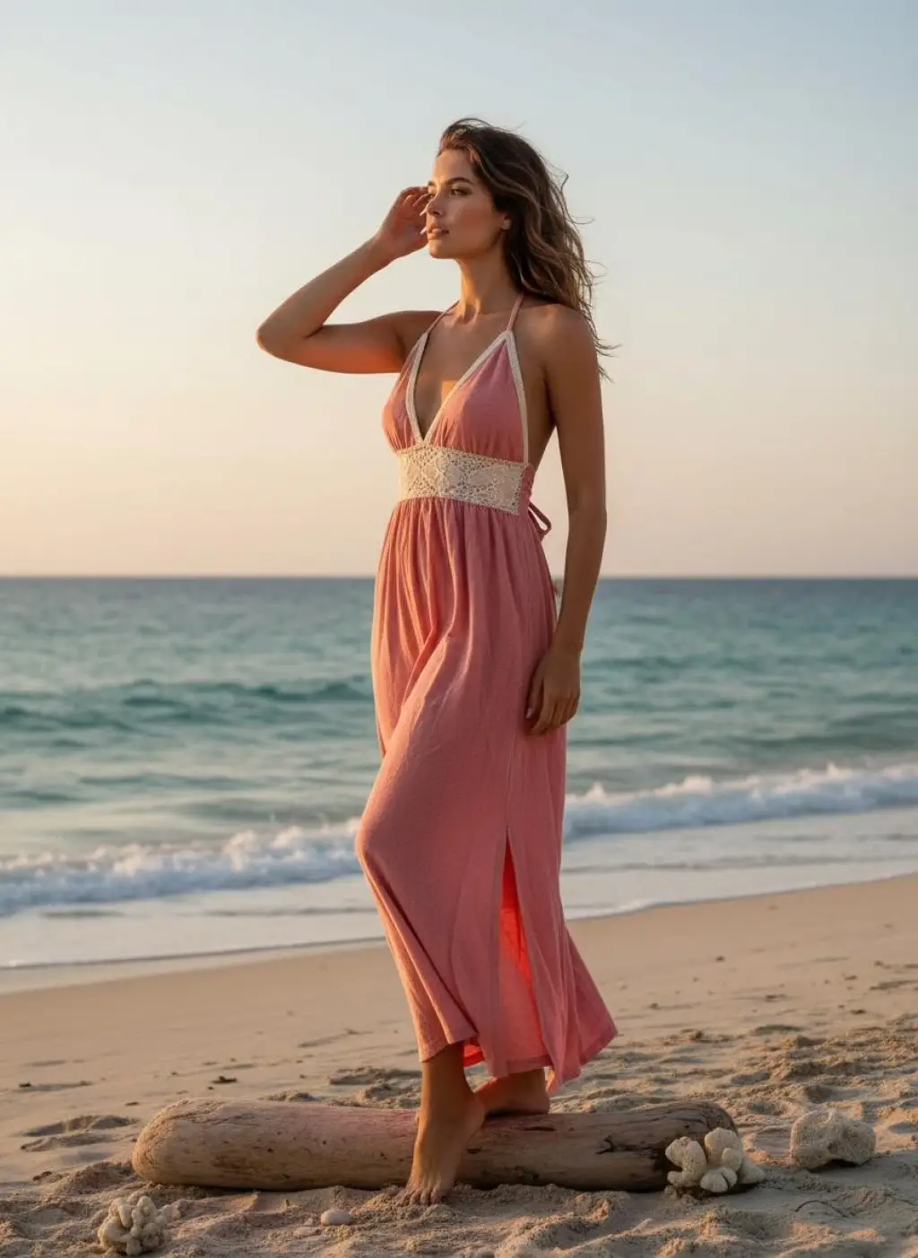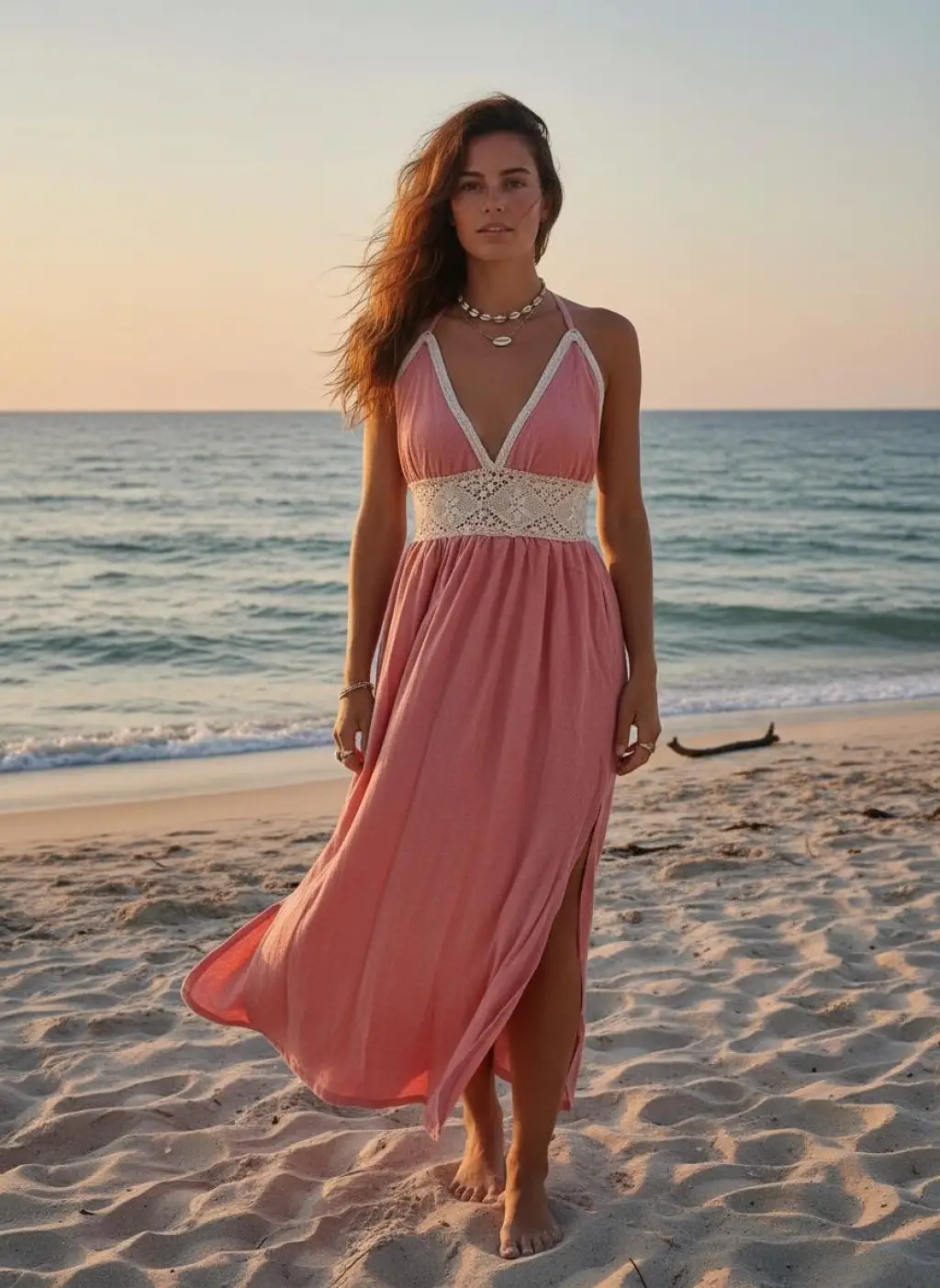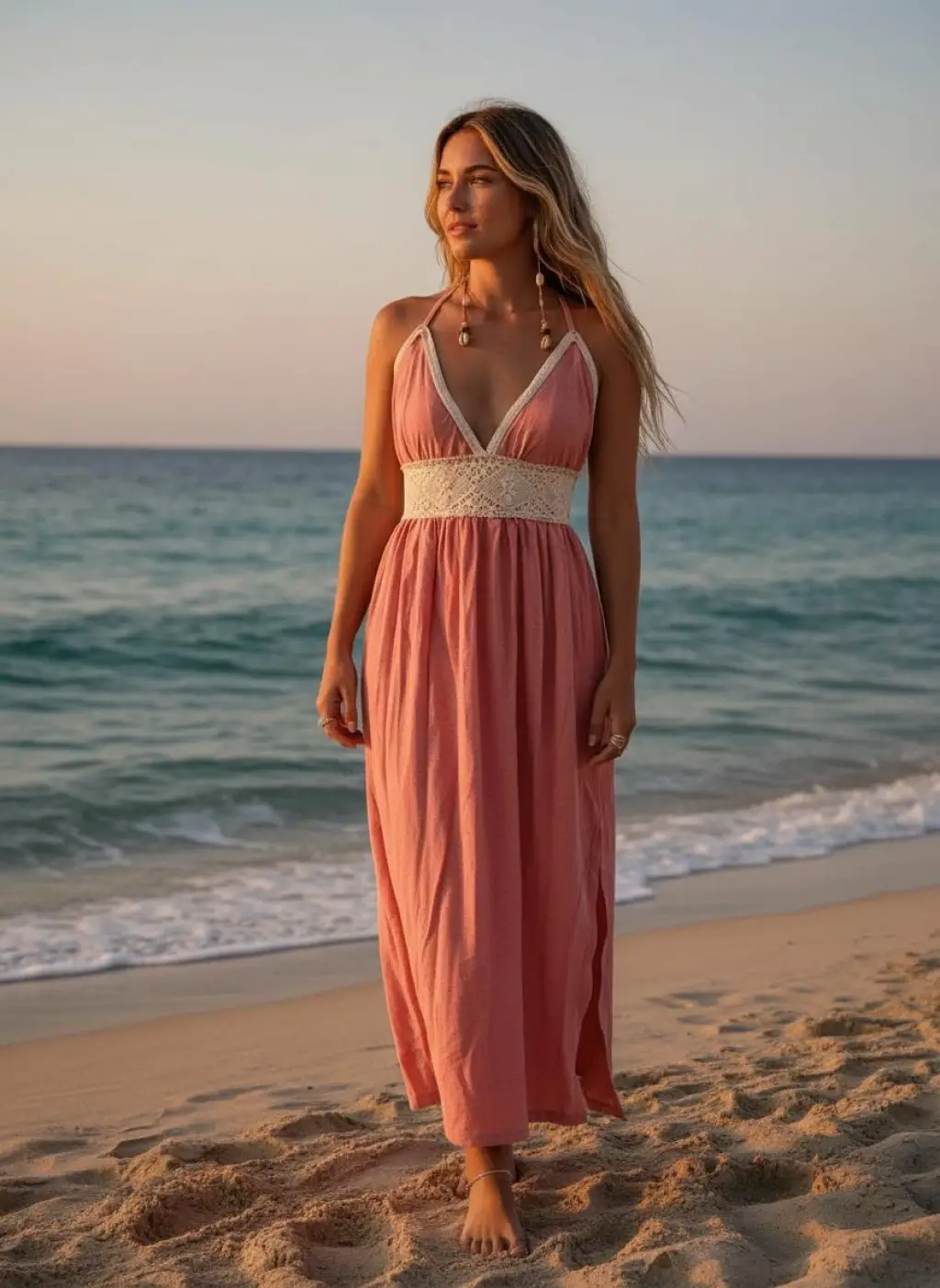 PETUNYA ÖRGÜ DETAYLI BOHEM ELBİSE / Bej