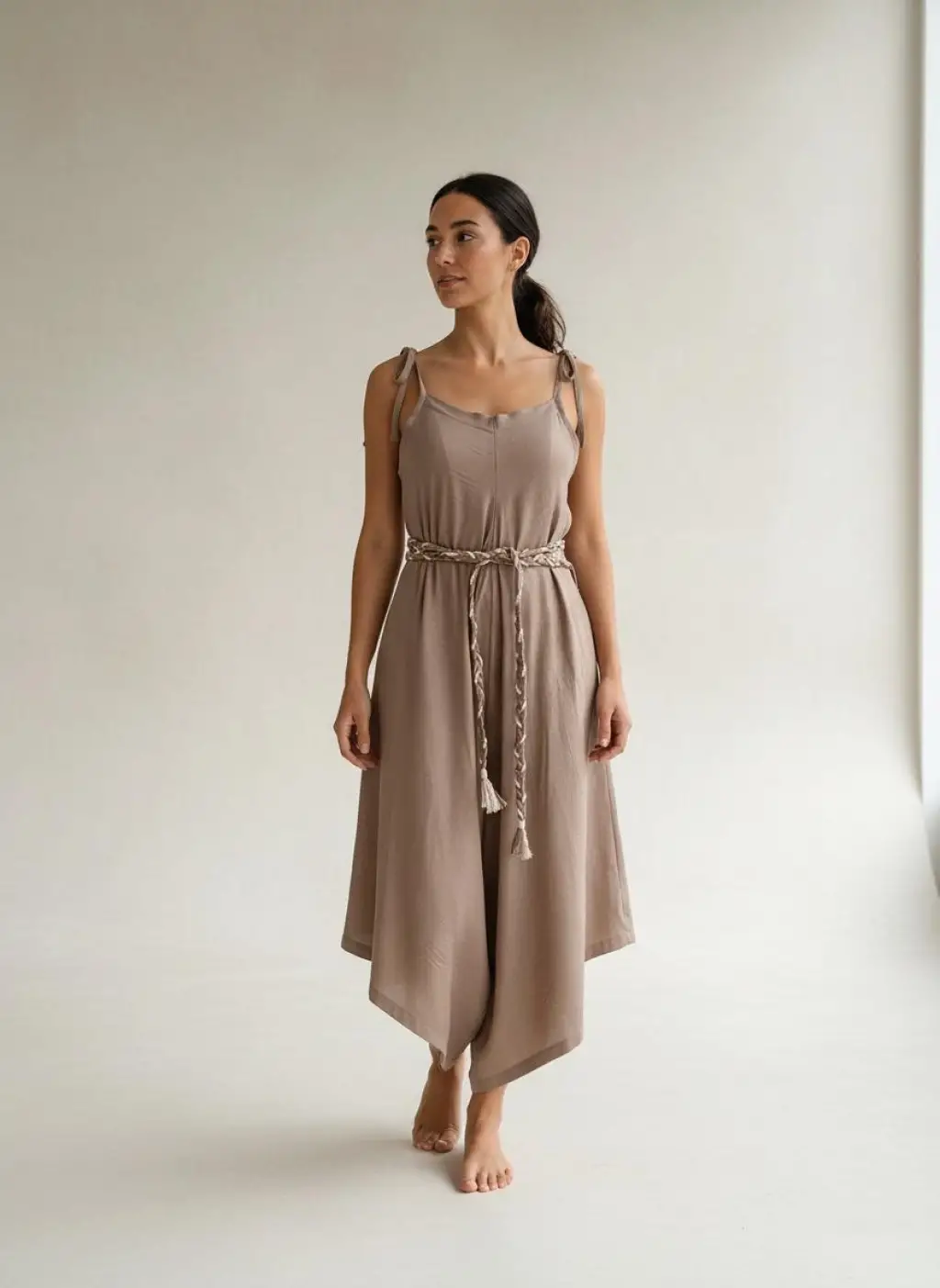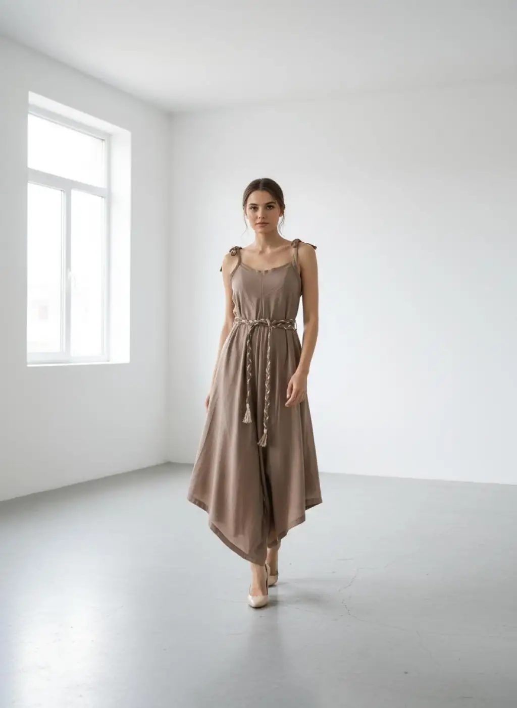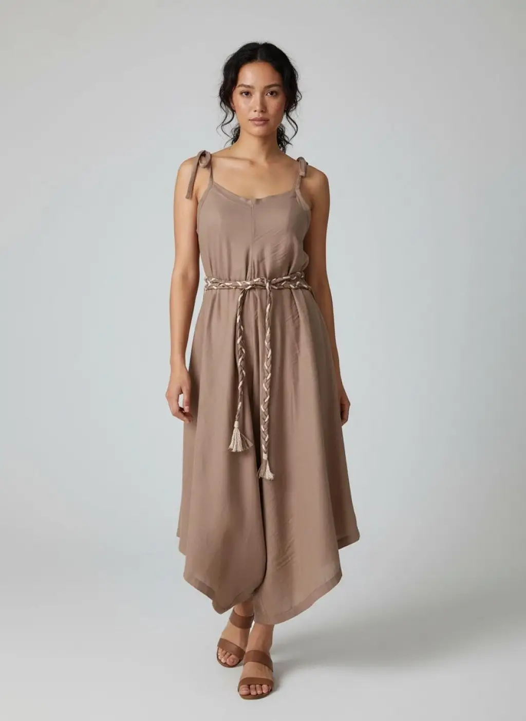 CLEOPATRA İP DETAYLI ASKILI ELBİSE