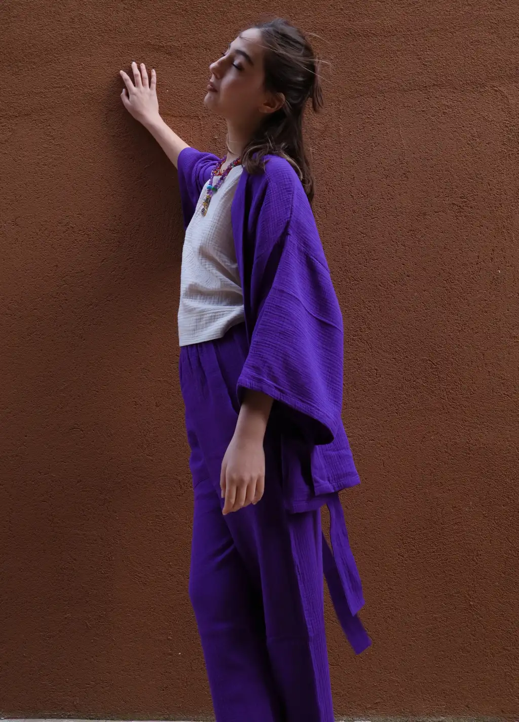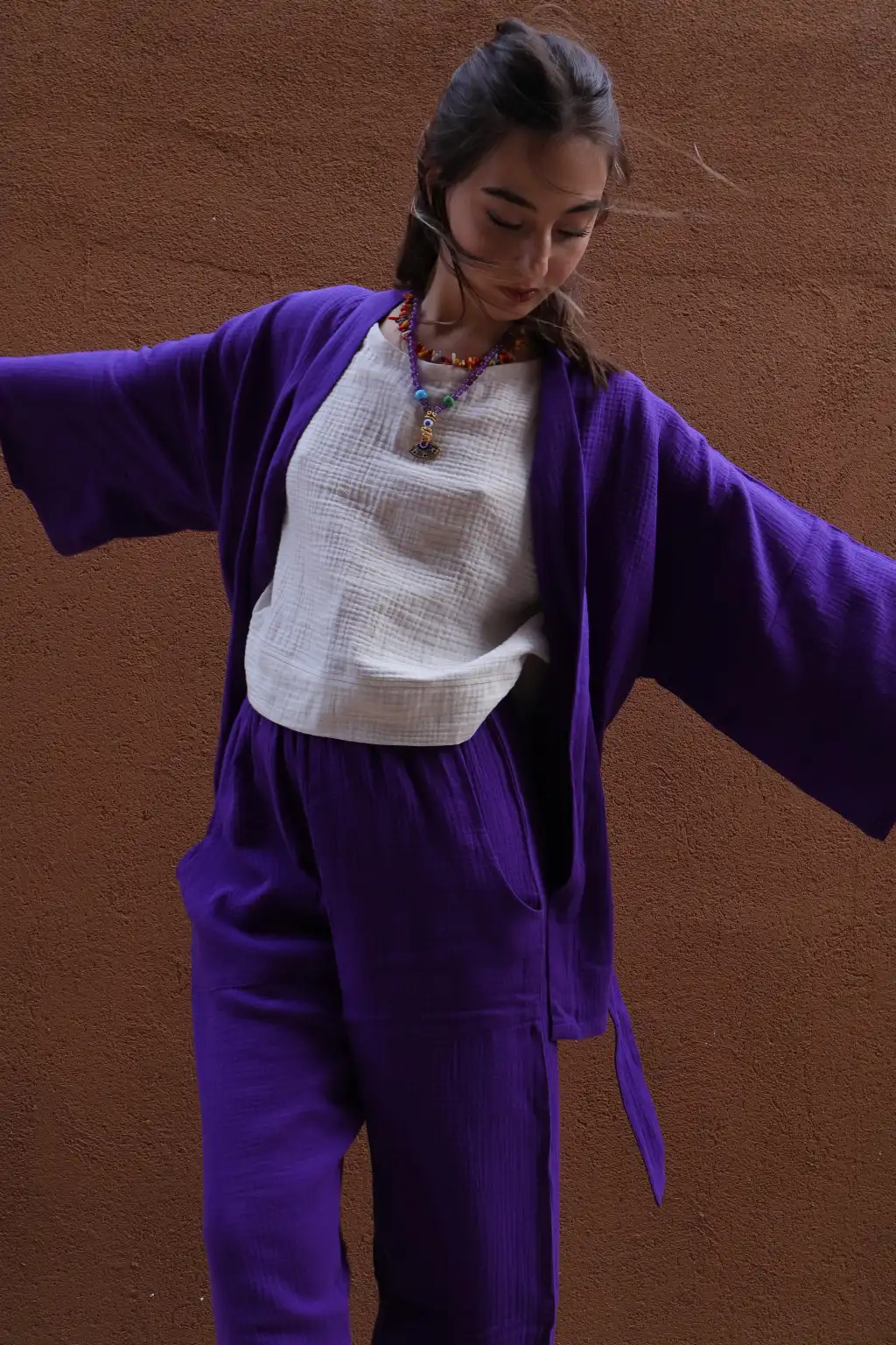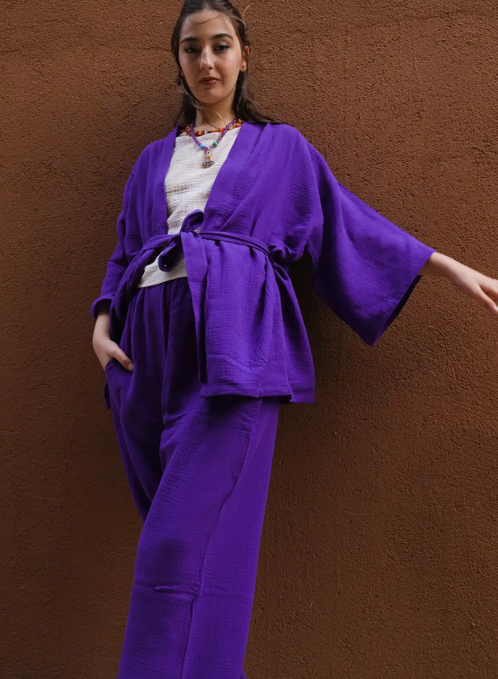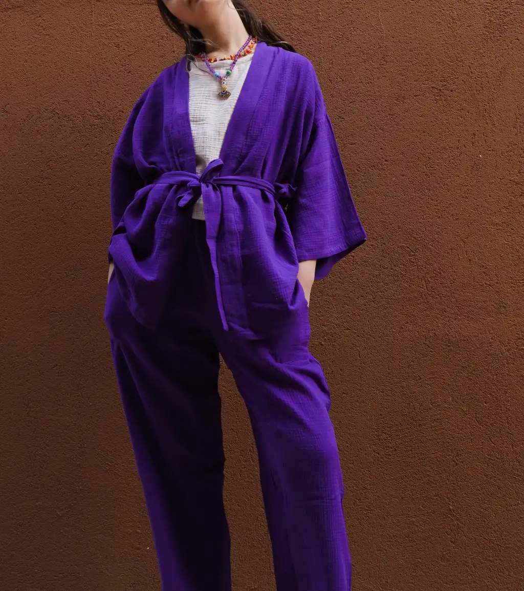 MELİS MÜSLİN KİMONO PANTOLON / Mor