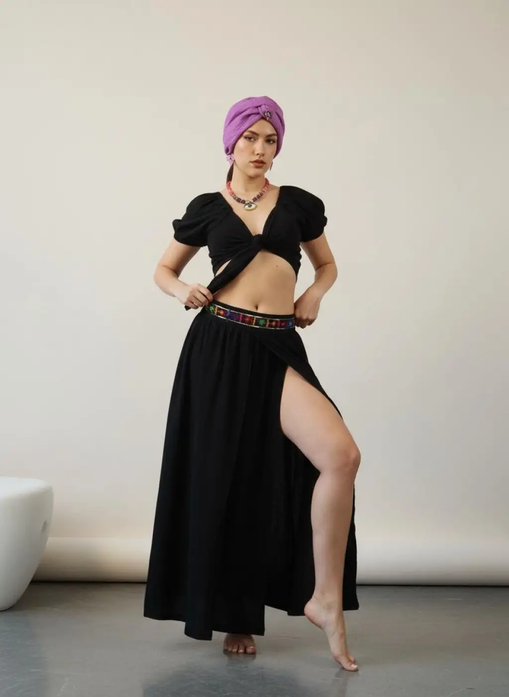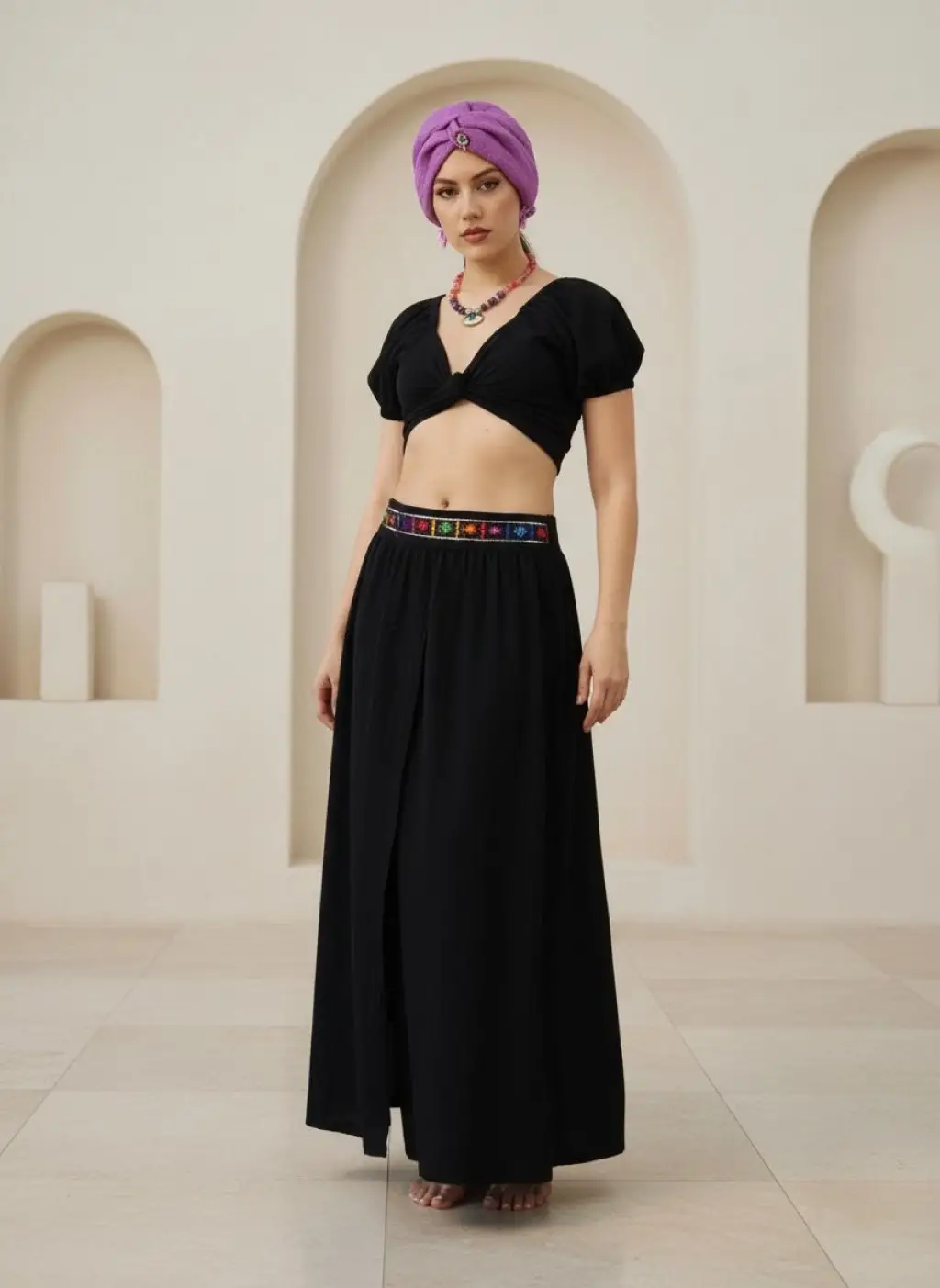 MİDYAT ŞİLE BEZİ BOHEM ETEK / Siyah