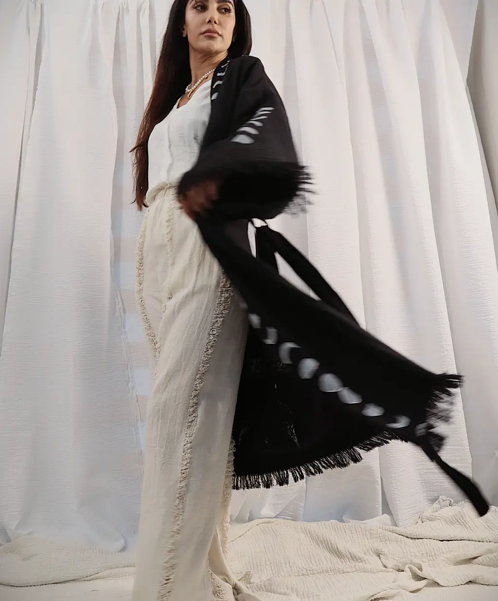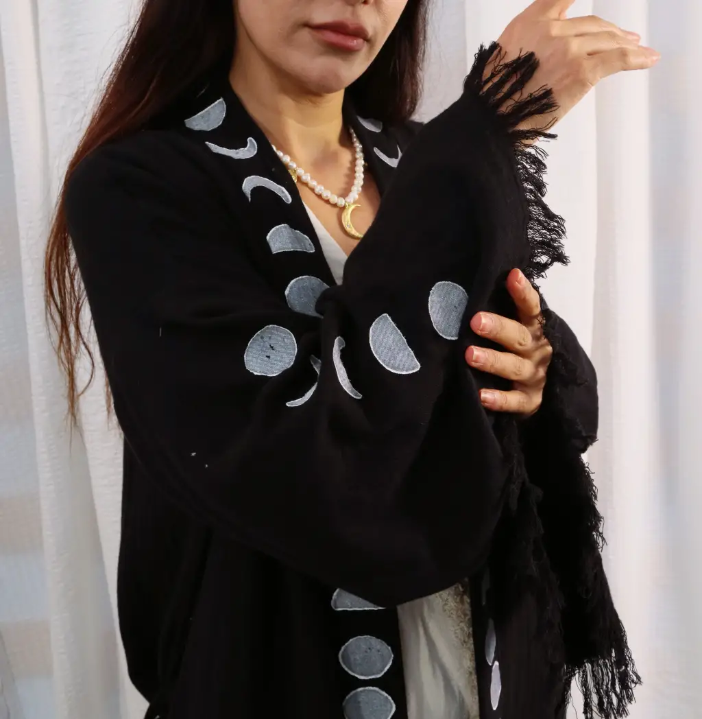 Kalın Müslin Kumaşı ve el baskılı ay deseni , rahat oversize kalıbı ile kullanışlı ve benzersiz