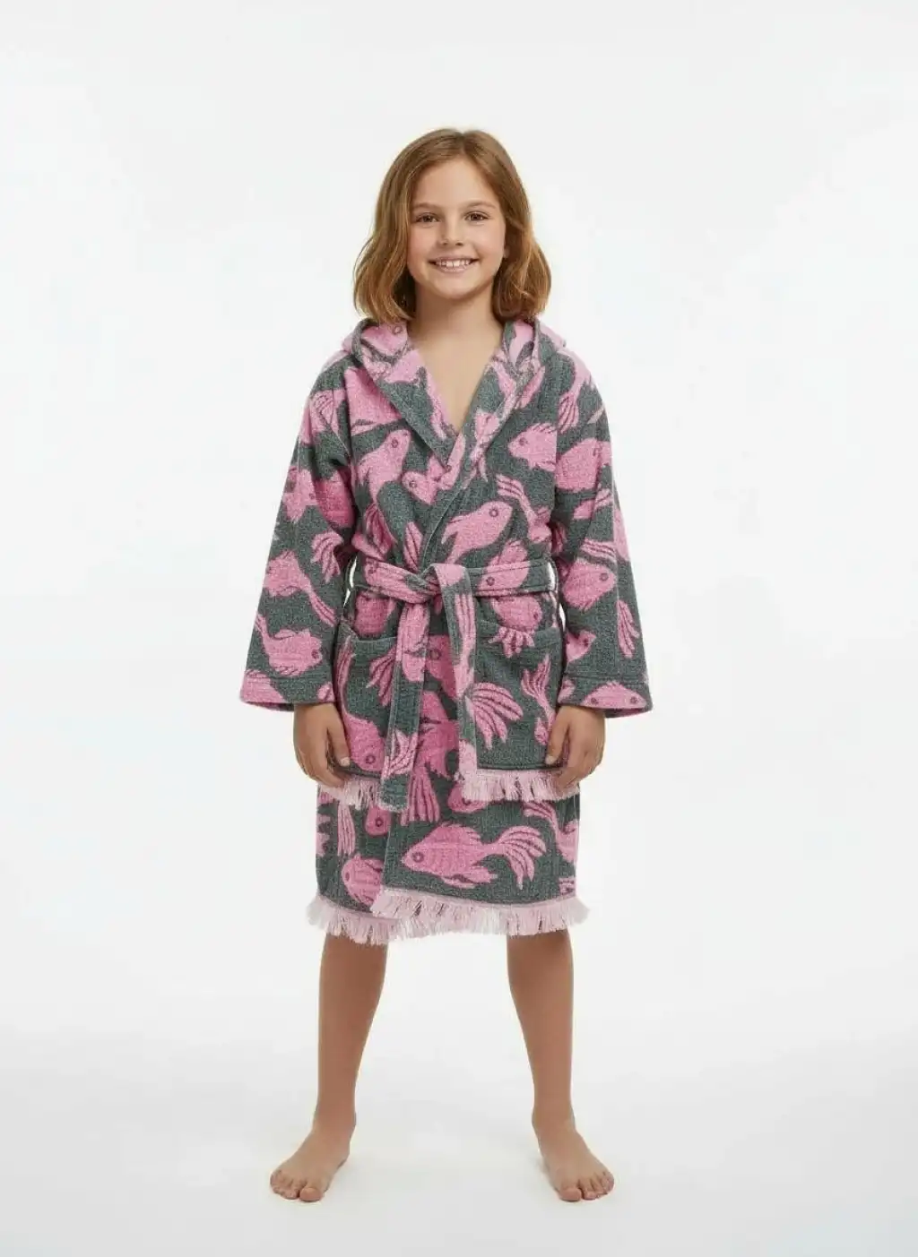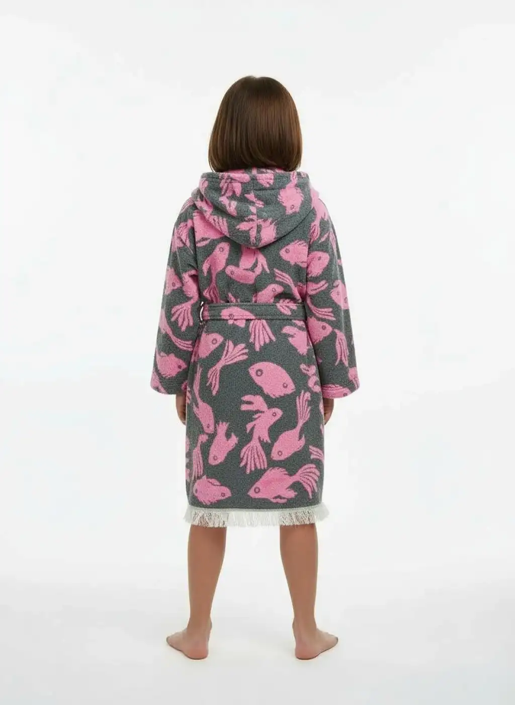Balık desenli jakarlı müslin çocuk bornoz