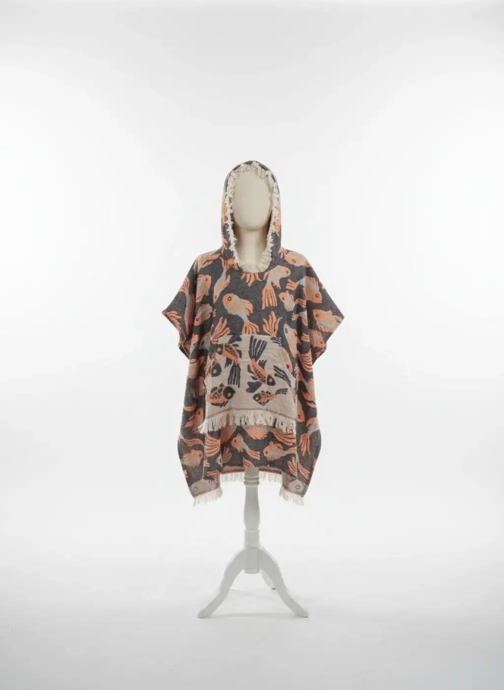 Balık desenli jakarlı müslin panço