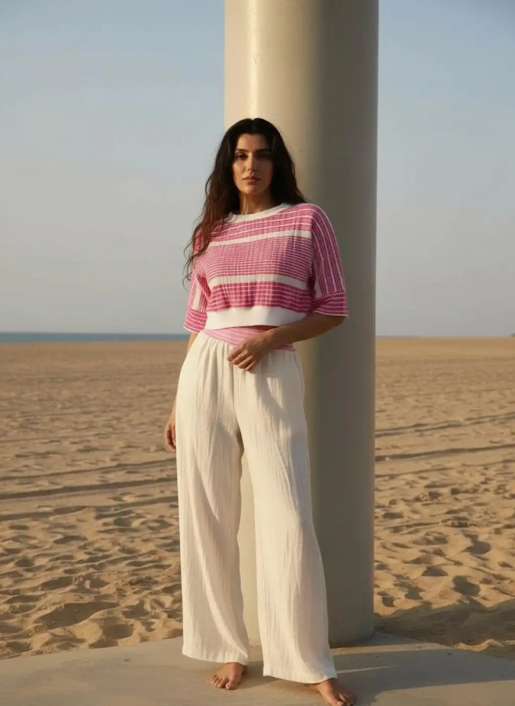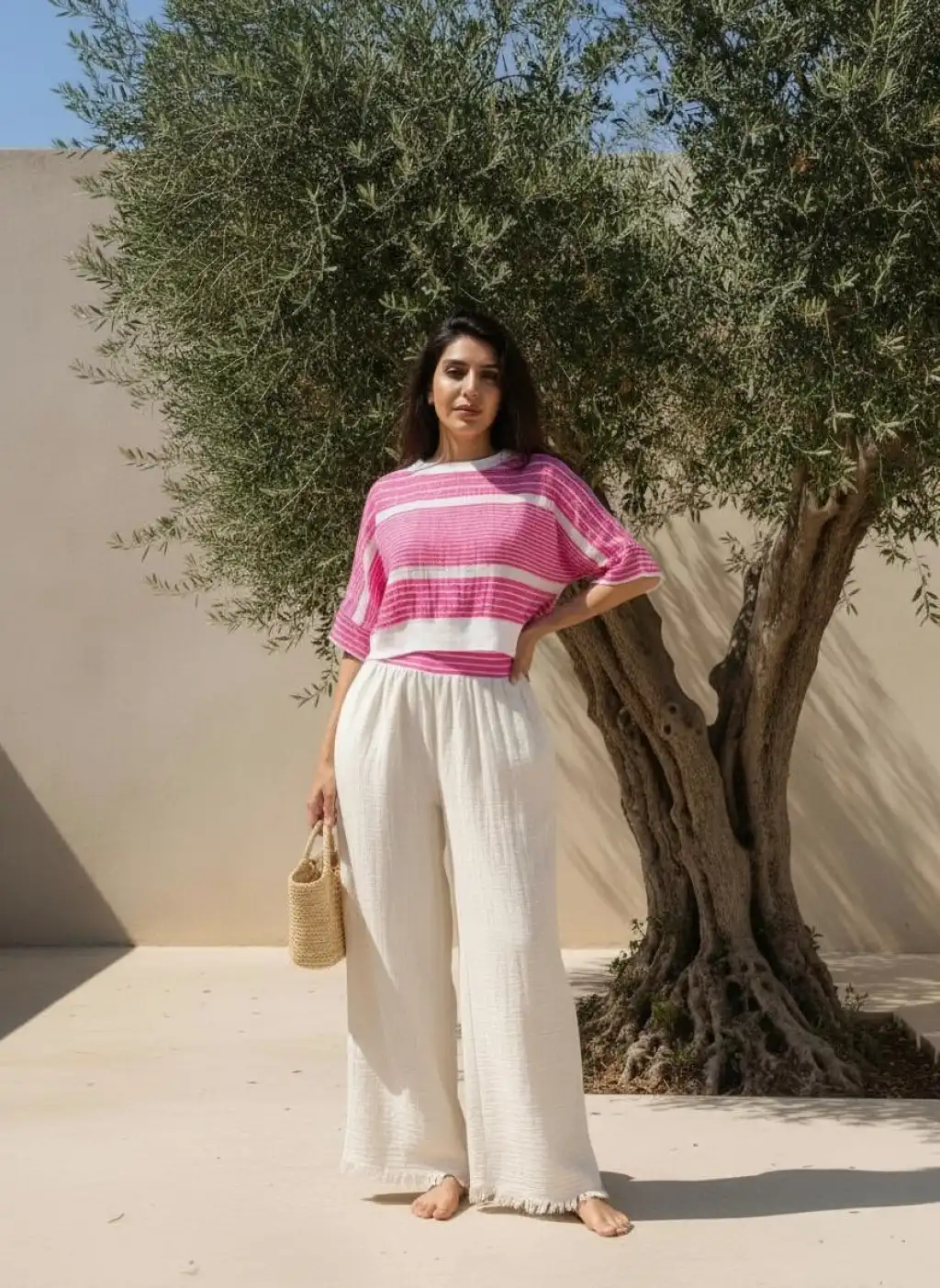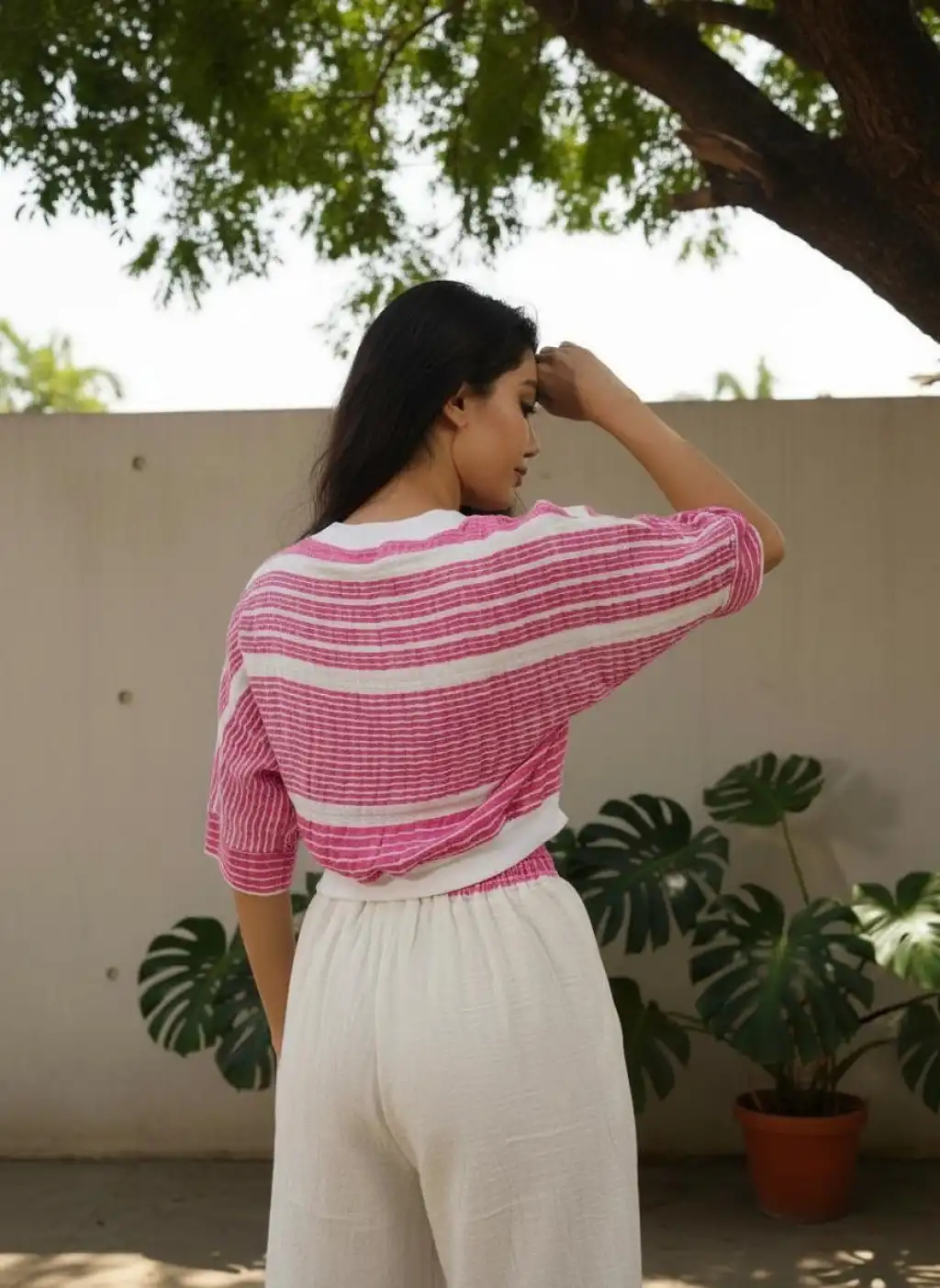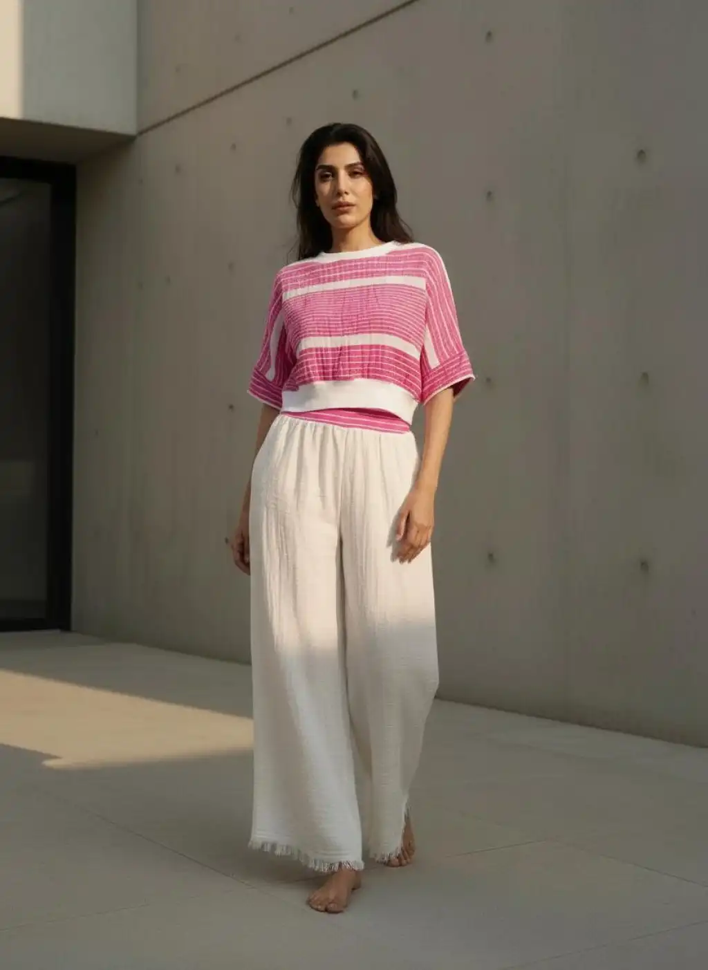 MUMBAI MÜSLİN CROP & PANTOLON TAKIM / Fuşya