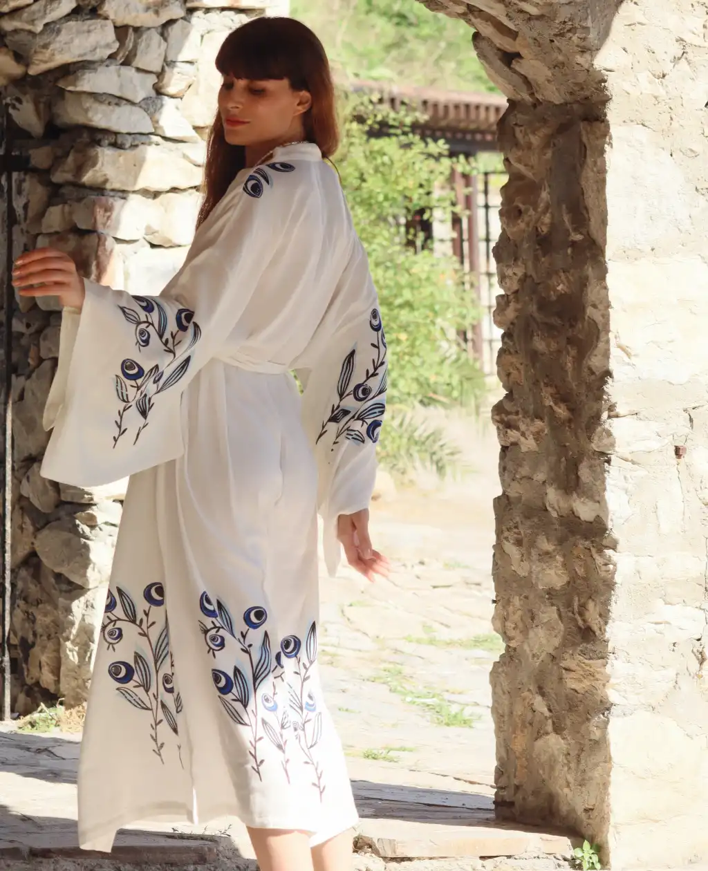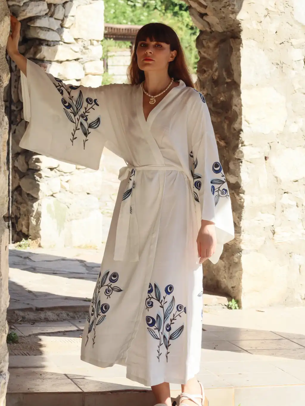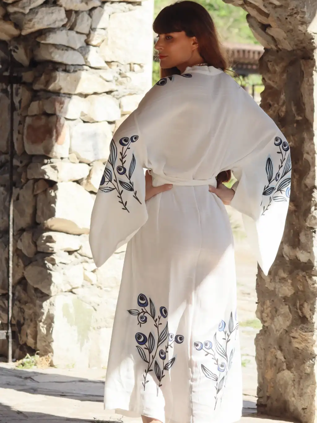 İncecik doğal viskon üzerine nazar bonuğu baskılı, uçucu ve serin tutacak çok şık Kaftanımız