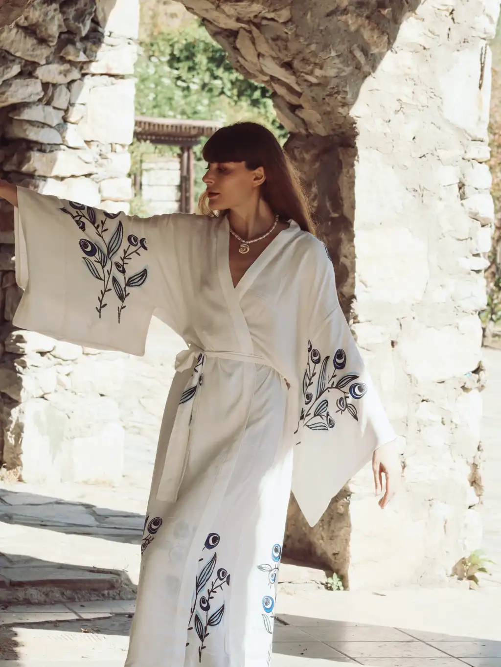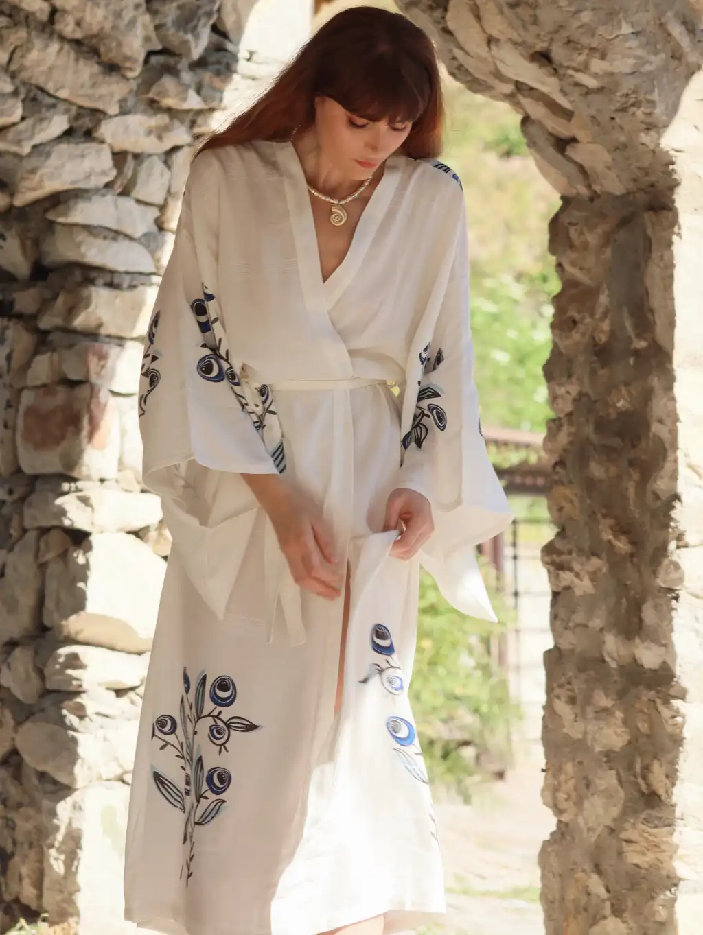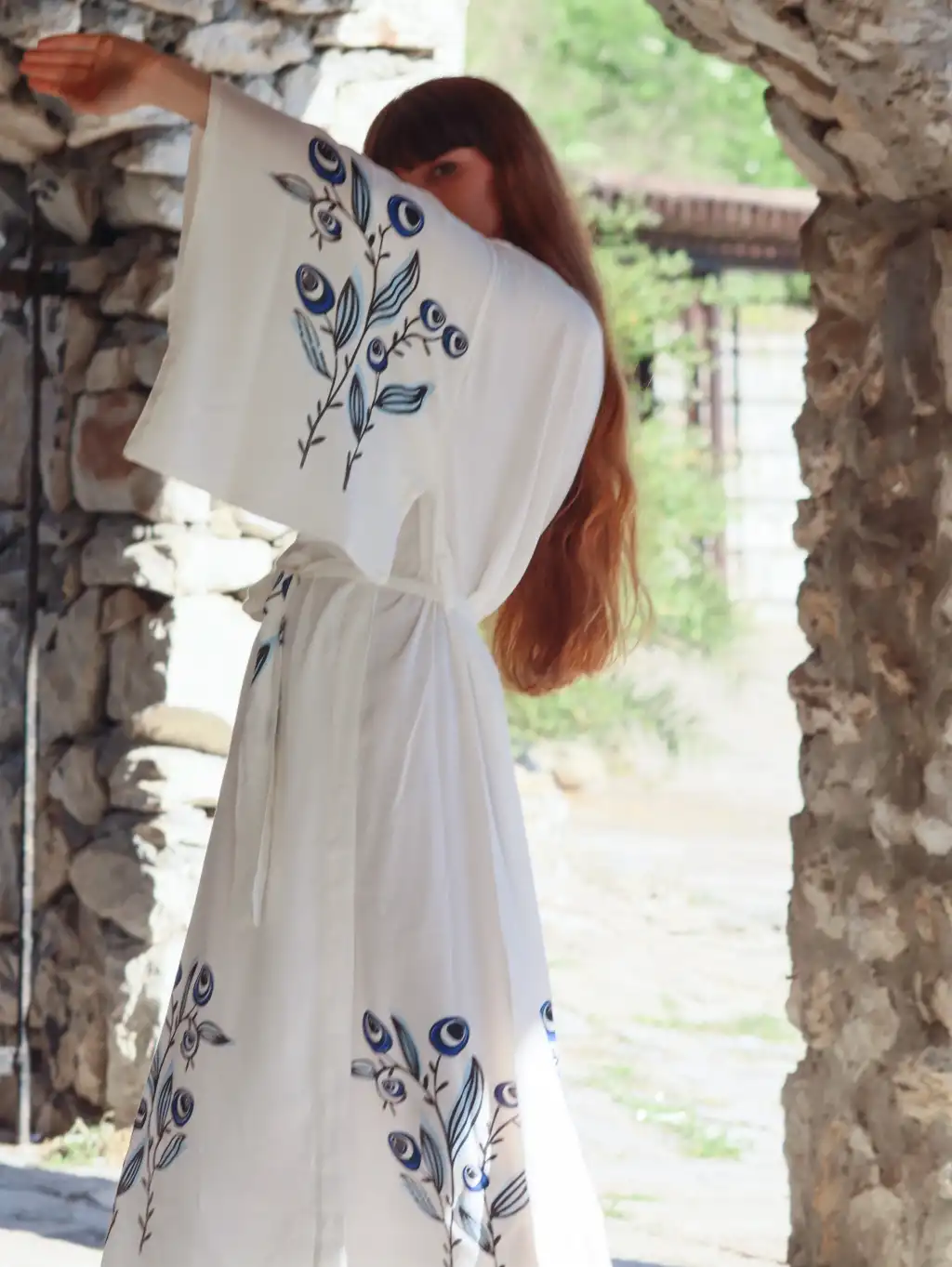 İncecik doğal viskon üzerine nazar bonuğu baskılı, uçucu ve serin tutacak çok şık Kaftanımız