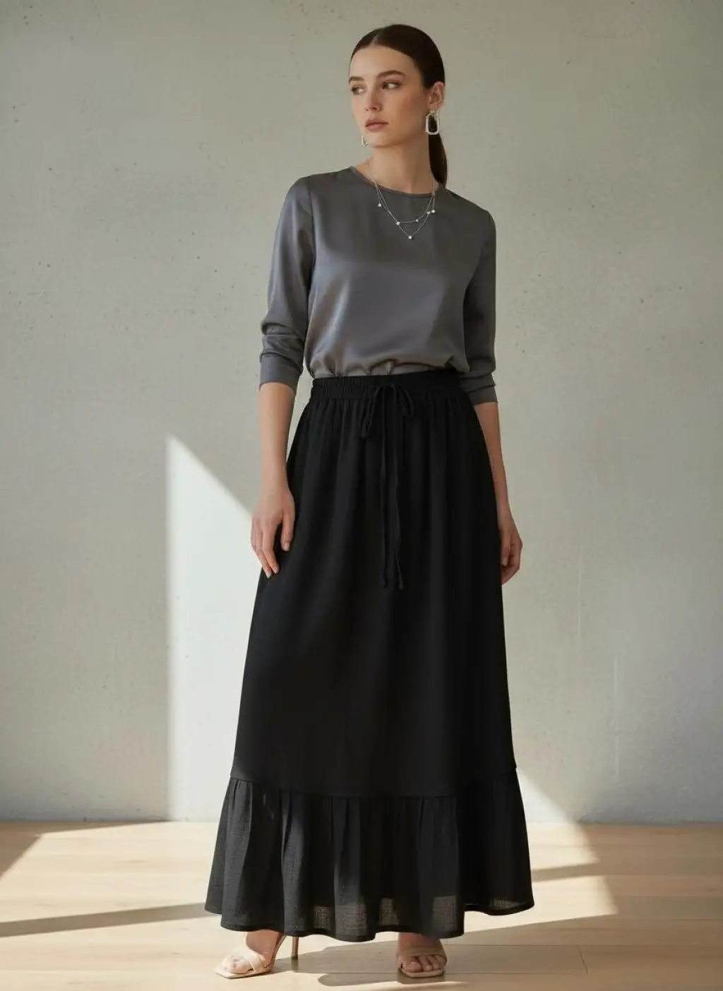 NAZLI PAMUK VUAL ÇİFT KAT ETEK / Siyah