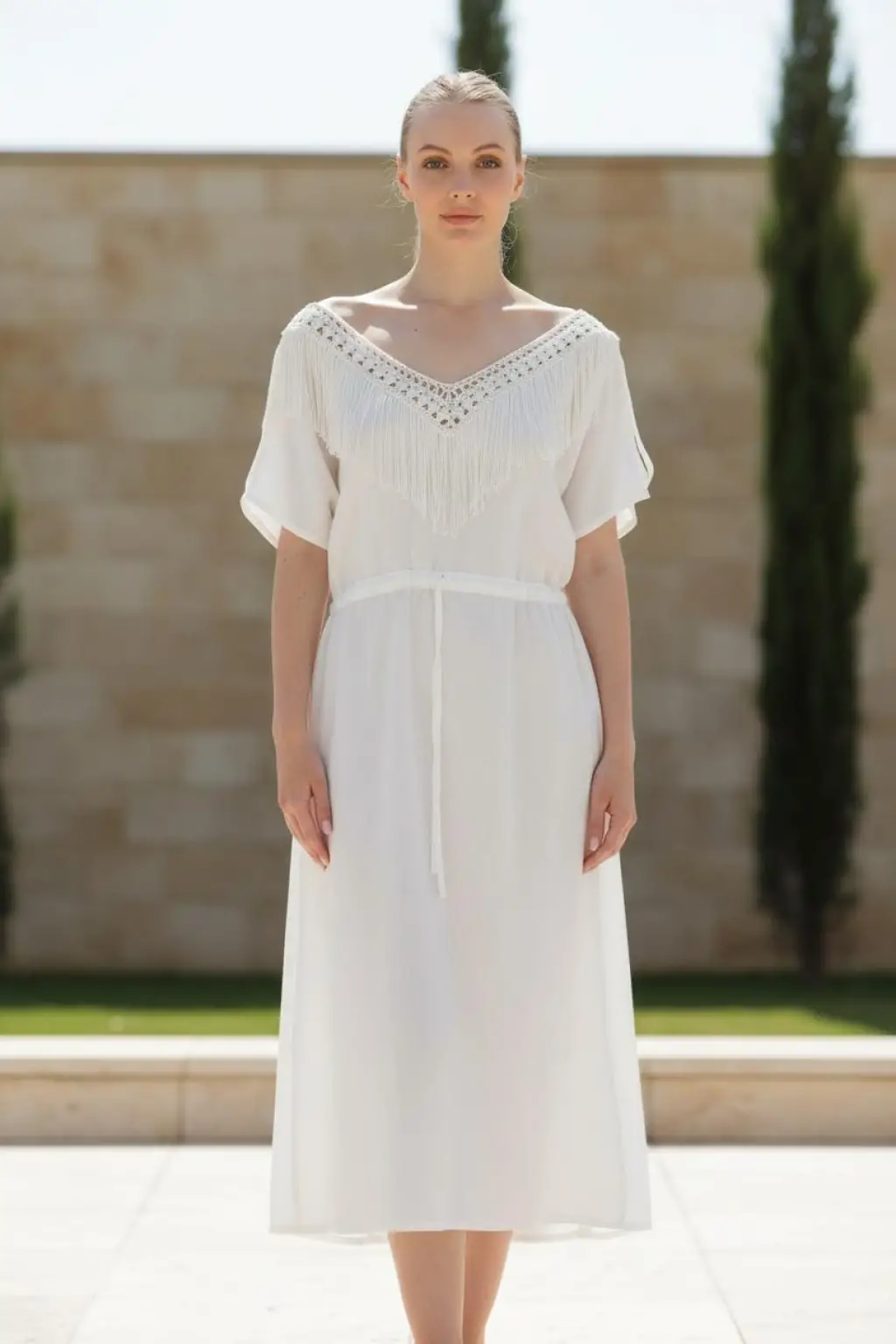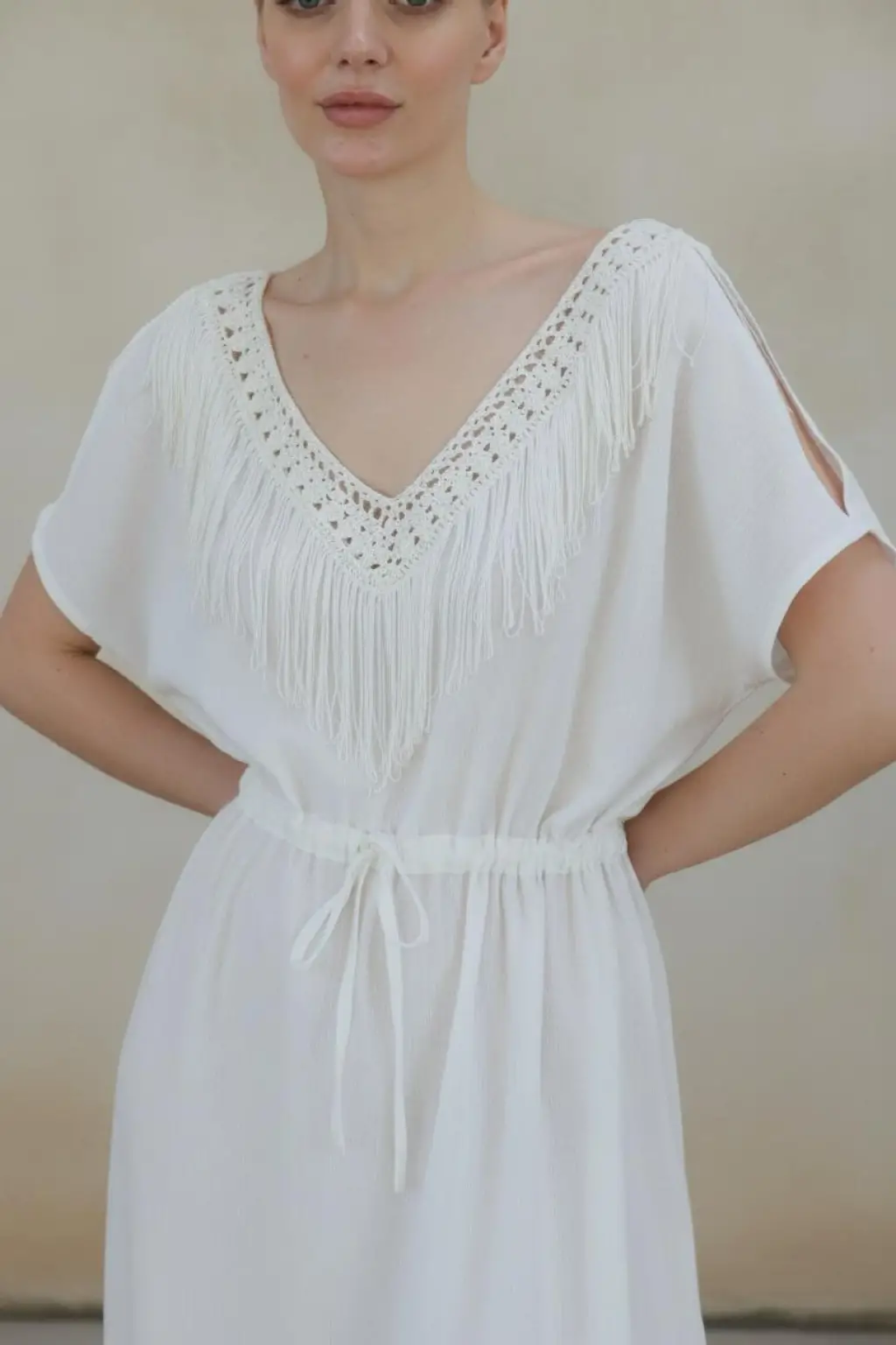 Doğal Dokuma Şile Bezi Yakası Püskül Detaylı Elbise